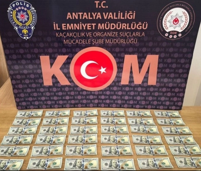 Antalya’da otellere 2 bin 600 dolar tutarında sahte para veren yabancı uyruklu şüpheli üzerinde sahte paralarla başka bir ilde yakalandı.Antalya Emniyet Müdürlüğü Kaçakçılık ve Organize Suçlarla Mücadele Şube Müdürlüğü görevlilerince yapılan çalışmalarda Antalya’da otellere sahte 2 bin 600 ABD Doları vererek vatandaşları mağdur eden yabancı uyruklu şahıs, üzerinde bulunan sahte 400 ABD Doları ve 250 Euro ile başka bir ilde yakalandı.“Parada Sahtecilik” suçundan gözaltına alınarak adli makamlara sevk edilen şüpheli çıkarıldığı mahkemece tutuklandı.