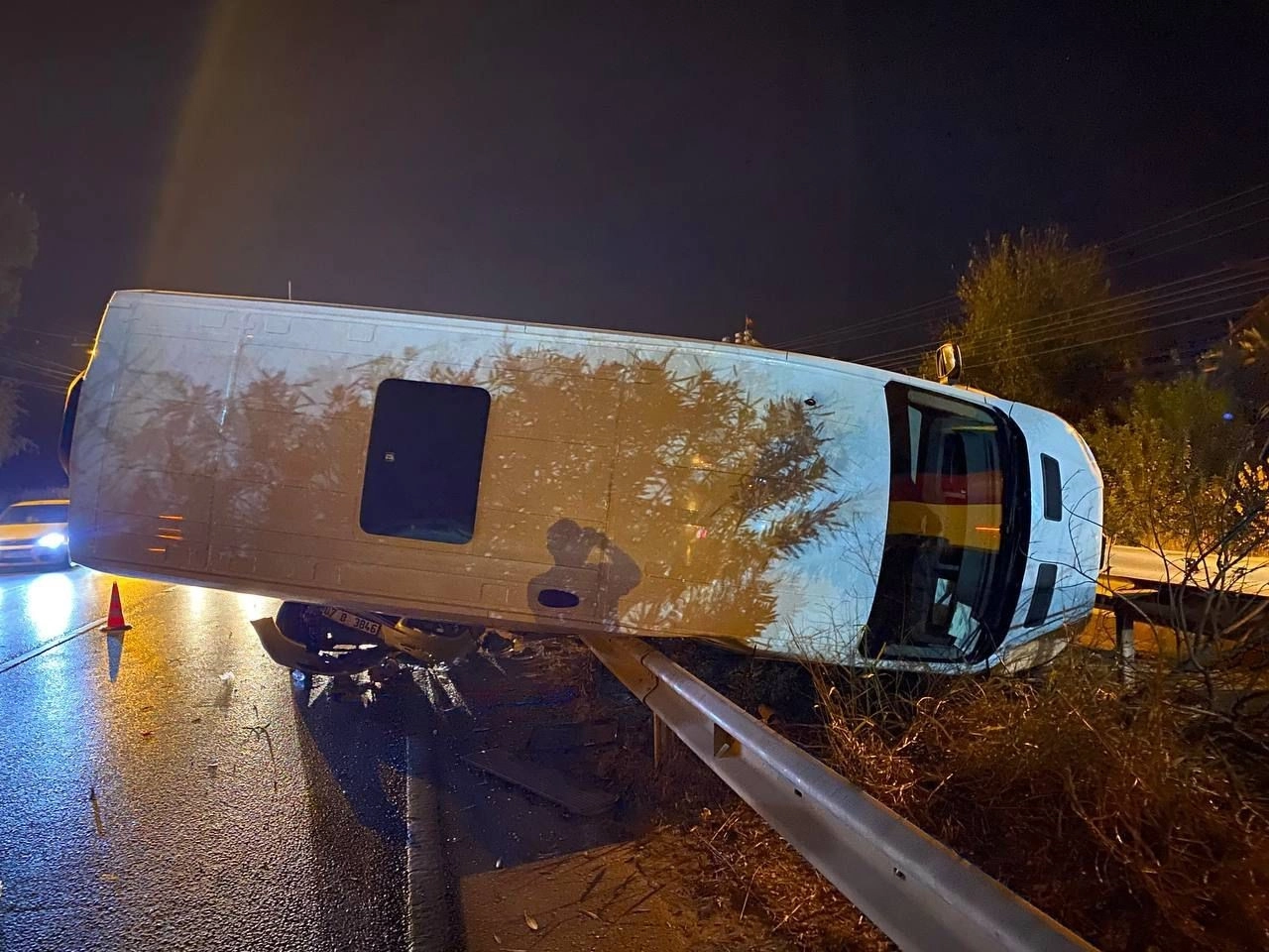 Antalya’nın Serik ilçesinde servis minibüsü ile otomobilin karıştığı kazada şans eseri yaralanan olmadı.Kaza, akşam saatlerinde Cumalı Mahallesi D400 karayolu üzerinde meydana geldi. Edinilen bilgiye göre, Serik’ten Antalya istikametine seyir halindeki Cem A. idaresindeki 07 C 3891 plakalı servis minibüsü ile aynı istikamete giden Yunus K. yönetimindeki 07 D 3846 plakalı otomobil çarpıştı. Çarpışmanın etkisiyle minibüs orta refüjde bulunan demir korkuluklara çarparak yan yattı. Kazada şans eseri yaralanan olmadı. İhbar üzerine kaza yerine sağlık, itfaiye ve polis ekipleri sevk edildi.Sürücülerin yara almadan atlattığı kazada her iki araçta da yolcu bulunmadığı belirtildi.