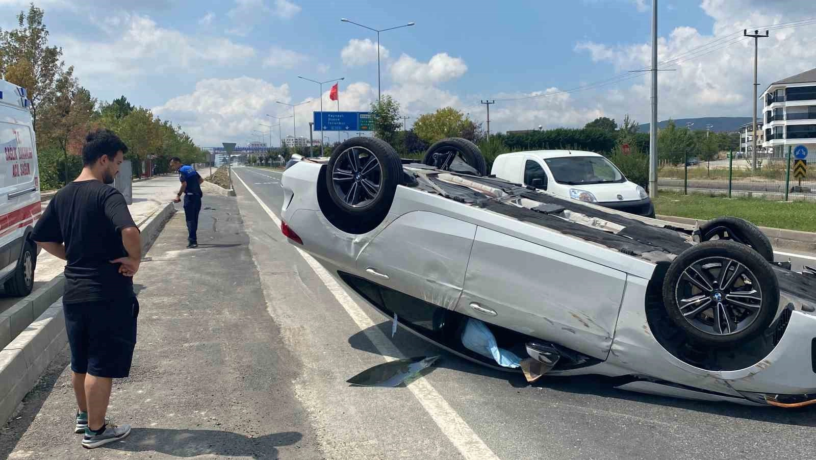 Bolu’da D-100 kara yolunda, kaldırıma çarpan otomobil tepetaklak oldu. Meydana gelen kazada sürücünün burnu bile kanamadı.Kaza, D-100 kara yolunun Ankara istikametinde Paşaköy mevkiinde meydana geldi. Edinilen bilgiye göre, Ankara istikametine seyreden B.A (25) idaresindeki 34 DNA 040 plakalı otomobil, yan yoldan, D-100’e katılmak isterken kaldırıma çarptı. Kontrolden çıkan otomobil, savrularak takla attı. Ters dönen otomobildeki sürücü kendi imkânlarıyla otomobilden çıkarken, olay yerine sağlık ve polis ekipleri sevk edildi. Sağlık durumu iyi olan sürücü, tedaviyi reddetti. Kazayla ilgili inceleme başlatılırken, otomobilde maddi hasar meydana geldi.