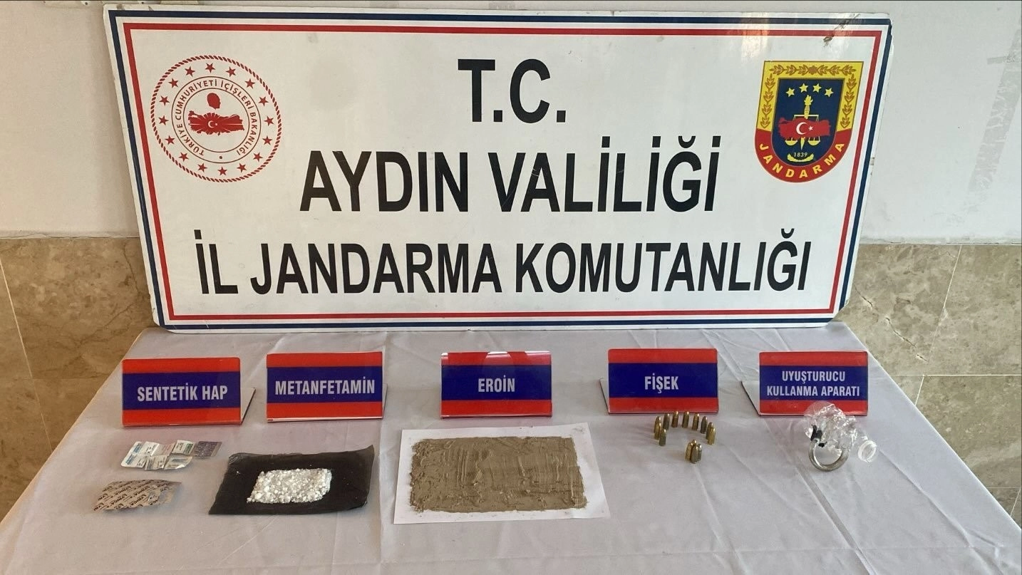 Aydın’ın Nazilli ilçesinde jandarma ekipleri tarafından kaldığı pansiyon odasında yapılan aramalarda uyuşturucu madde ele geçirilirken kadın şahıs gözaltına alına alındı.Aydın’da jandarma ekipleri uyuşturucu madde kullanımı ve ticaretinin önlenmesine yönelik çalışmalarını aralıksız sürdürüyor. Edinilen bilgiye göre, Aydın İl Jandarma Komutanlığı Kaçakçılık ve Organize Suçlarla Mücadele Şube Müdürlüğü ve Nazilli İlçe Jandarma Komutanlığınca uyuşturucu madde imal ve ticareti yapan şahsa yönelik icra edilen faaliyette M.Y. (19) isimli kadın şahsın kaldığı pansiyon odasına operasyon düzenlendi. Odada yapılan aramalarda; 53 gram eroin, 8 gram metamfetamin, 32 adet sentetik hap, 14 adet mermi, 1 adet bong aparatı ele geçirildi. Şüpheli şahıs M.Y. jandarma ekiplerince gözaltına alındı.Olayla ilgili soruşturma sürüyor.