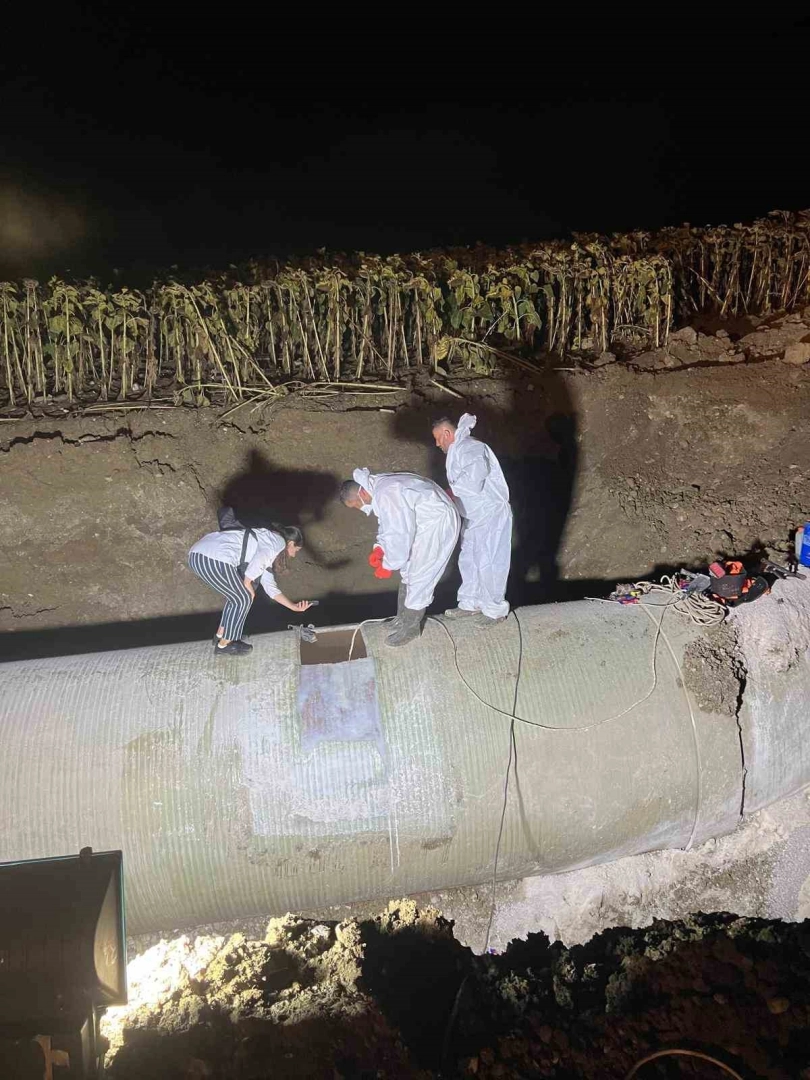 Samsun’un Vezirköprü ilçesinde patlayan 2000 mm çapındaki sulama borusunda onarım çalışmaları devam ediyor.DSİ Samsun 7. Bölge Müdürlüğü’nden yapılan açıklamada, “Vezirköprü Barajı sulama şebekesi 2000 mm çapında CTP ana besleme hattında dün saat 14.30 civarında bir arıza meydana gelmiştir. Ana hat işletme vanası uzaktan müdahale ile anında kapatılarak su kesilmiştir. Sulama şebekesinde basıncın düşük olması sebebiyle hattaki suyun tahliyesinin ardından DSİ ve Vezirköprü Sulama Birliği ekiplerimizce derhal tamir çalışmaları başlatılmıştır. Bu gece ilerleyen saatlere kadar arızanın giderilmesi çalışmaları yürütülmekte olup, Cumartesi günü hattın tekrar hizmete açılması hedeflenmektedir” denildi.