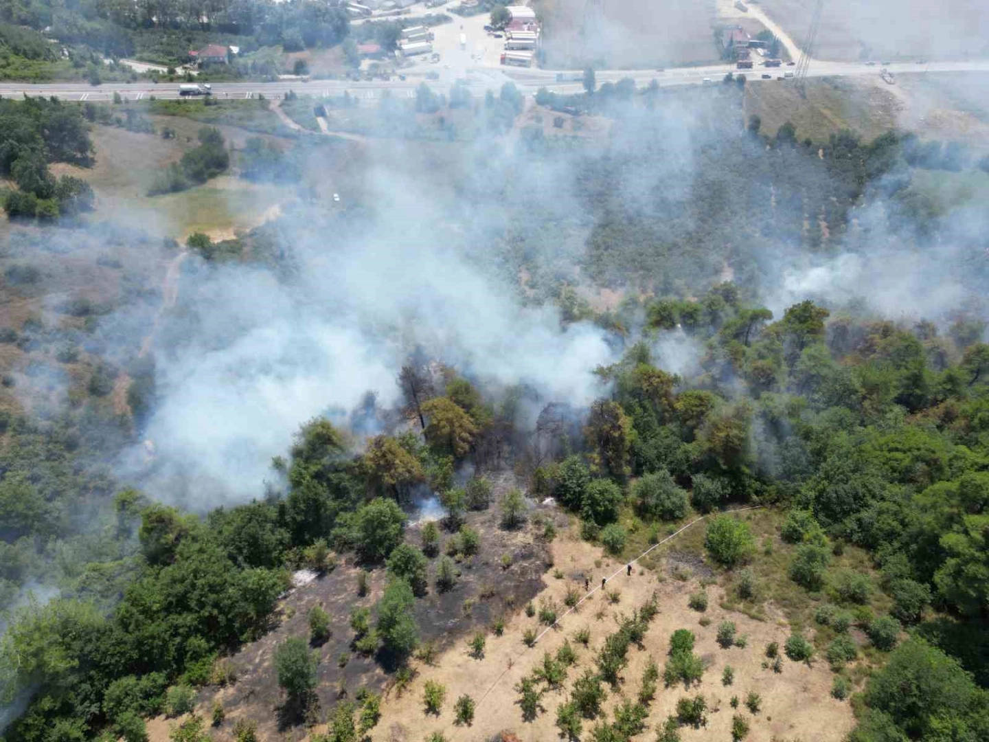 Sakarya’nın Akyazı ilçesinde 10 hektarlık alanda çıkan yangın dron ile havadan görüntülendi. Helikopterin de havadan destek sağladığı yangın kontrol altına alınarak söndürüldü.Yangın, Dokurcun Çengeller Mahallesi’nde bulunan ormanlık alanda çıktı. Kısa sürede büyüyen alevler 10 hektarlık alanda etkili oldu. Durumun haber verilmesi üzerine bölgeye itfaiye, jandarma, Orman İşletme Müdürlüğü’ne bağlı ekipler ve Akyazı Belediyesi’ne ait iş makineleri sevk edildi. Yangın bölgesine gelerek incelemelerde bulunan Akyazı Belediye Başkanı Bilal Soykan ekiplerden de bilgi aldı. Karadan devam eden çalışmalara yangın söndürme helikopteri de havadan destek verdi. Ekiplerin havadan ve karadan müdahalesi ile yangın daha fazla yayılmadan kontrol altına alınarak söndürüldü.