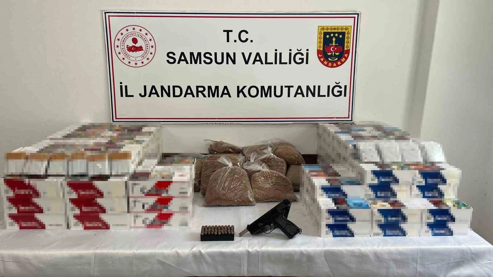 Samsun’da jandarma ekipleri tarafından 32 bin 740 adet makaron ele geçirildi.Edinilen bilgiye göre, Samsun’un Ayvacık ilçesinde jandarma ekipleri, kaçakçılık olaylarının önlenmesine yönelik yapılan araştırma sonucu A.B.(68) ve C.B. (23) isimli şahısların işyerinde bandrolsüz makaron bulundurdukları bilgisine ulaştı. Samsun İl Jandarma Komutanlığı Kaçakçılık ve Organize Suçlarla Mücadele Şube Müdürlüğü, İstihbarat Şube Müdürlüğü ve Ayvacık İlçe Jandarma Komutanlığı ekiplerince şahsın iş yerinde, ikamet ve aracında yapılan aramada 32 bin 740 adet tütün doldurulmuş makaron, 7 kilo açıkta kıyılmış tütün, 1 adet 9 mm çaplı ruhsatsız tabanca, 2 adet şarjör ve 50 adet 9 mm fişek ele geçirildi.Soruşturma devam ediyor.