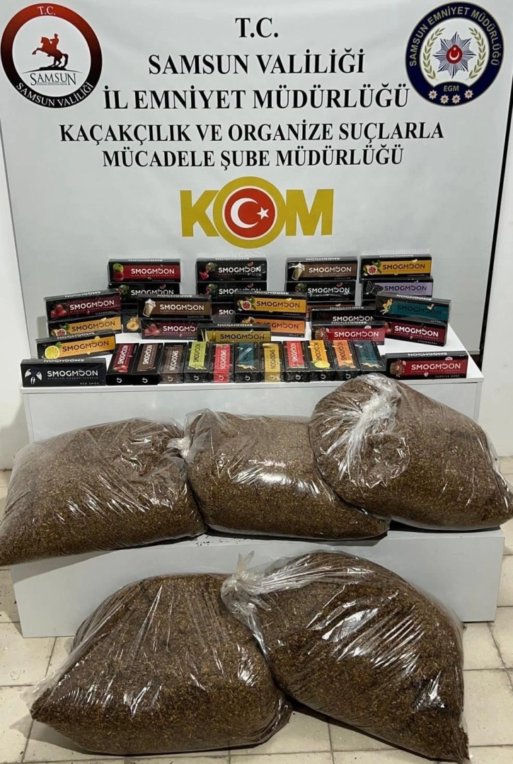 Samsun’da 410 paket halinde 20,5 kilo gümrük kaçağı nargile tütünü ve 60 kilo kaçak tütün ele geçirildi.Edinilen bilgiye göre, Samsun Emniyet Müdürlüğü Kaçakçılık ve Organize Suçlarla Mücadele Şube Müdürlüğü ekipleri, İlkadım ilçesinde önceden tespit edilen adrese operasyon düzenledi. Yapılan aramalarda, 410 paket halinde 20,5 kilo gümrük kaçağı nargile tütünü ile 60 kilogram kaçak tütün ele geçirildi. Olayla ilgili İ.Y. ve Y.D. gözaltına alındı. Soruşturma devam ediyor.
