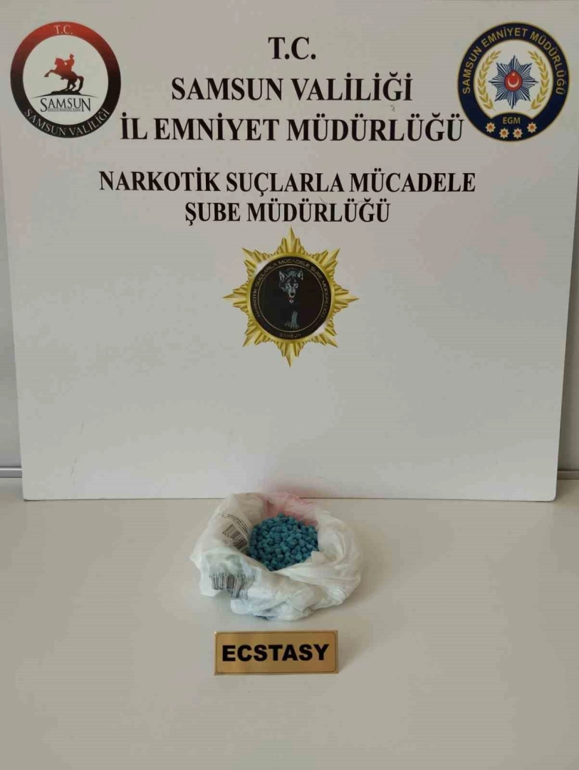 Samsun’da narkotik polisi tarafından 526 adet ecstasy hap ele geçirildi.Edinilen bilgiye göre, Samsun Emniyet Müdürlüğü Narkotik Suçlarla Mücadele Şube Müdürlüğü ekipleri, İlkadım ilçesinde bir şahıs üzerinde ve çantasında yapılan aramada 526 adet ecstasy hap ele geçirdi. Olayla ilgili soruşturma başlatıldı.
