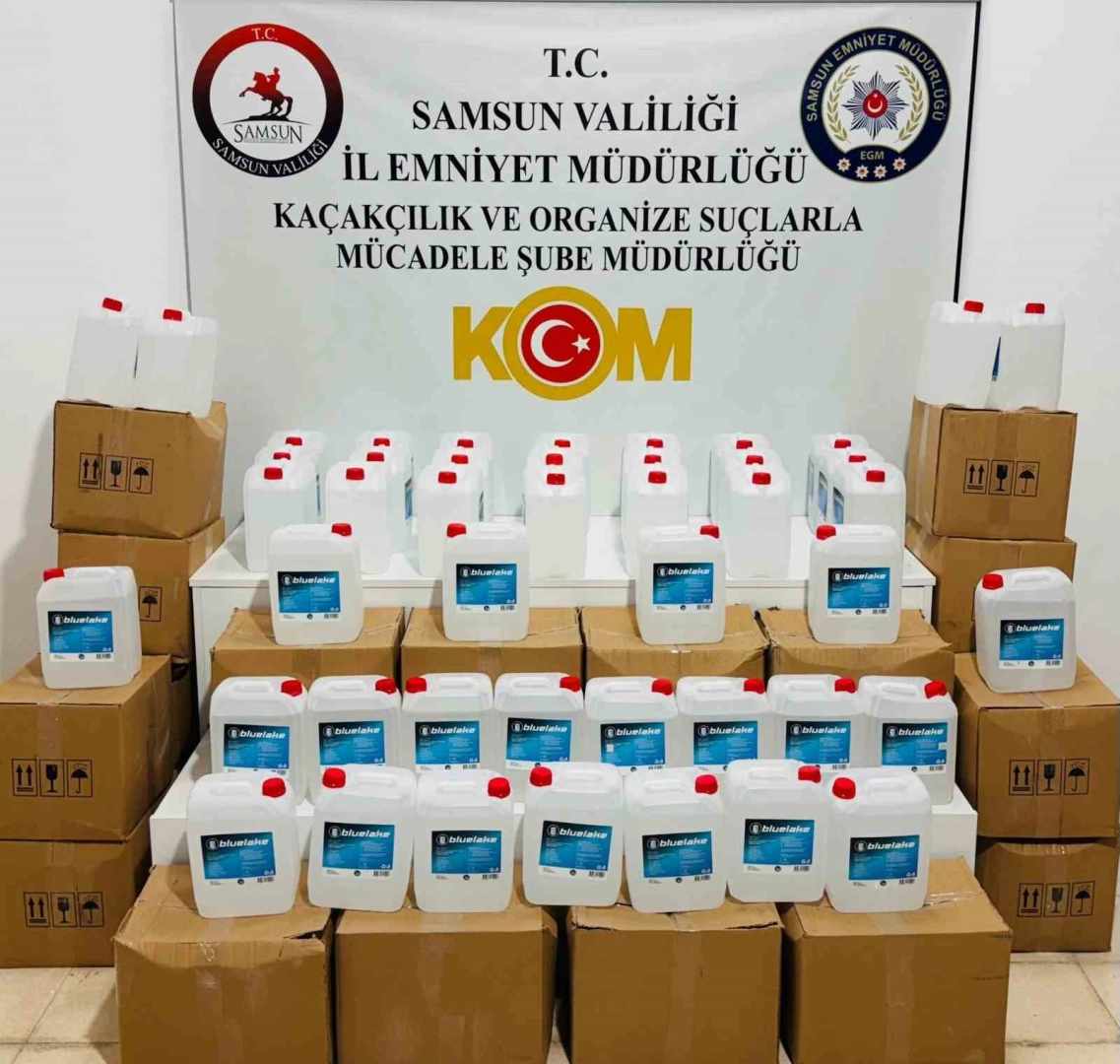 Samsun’da insan sağlığına ciddi zararlar veren sahte içki yapımında kullanılan 640 litre etil alkol ele geçirildi.Edinilen bilgiye göre, Samsun Emniyet Müdürlüğü Kaçakçılık ve Organize Suçlarla Mücadele Şube Müdürlüğü ekipleri, yasadışı, her türlü suç unsurunun ve aranan şahısların yakalanması amacıyla şehrin girişlerinde yol uygulaması yaptı. Yapılan yol uygulamasında şehirlerarası nakliyat yapan bir kamyonun kasasında kolilenerek diğer eşyalar arasına gizlenmiş şekilde, insan sağlığına ciddi zararlar veren sahte içki yapımında kullanılan 640 Litre etil alkol ele geçirildi. Olayla ilgili yakalanan H.O. hakkında yasal işlem başlatıldı.
