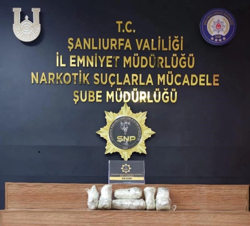 Şanlıurfa’da gerçekleştirilen operasyonda 5 kilo 350 gram uyuşturucu madde ele geçiren polis ekipleri, 6 zanlıyı da gözaltına aldı.Şanlıurfa İl Emniyet Müdürlüğü Narkotik Suçlarla Mücadele Şube Müdürlüğü ekipleri, uyuşturucu satıcılarına yönelik operasyon gerçekleştirdi. Operasyonda 5 kilo 350 gram skunk maddesi ele geçiren ekipler, 6 zanlıyı da gözaltına aldı.Olayla ilgili soruşturma devam ediyor.