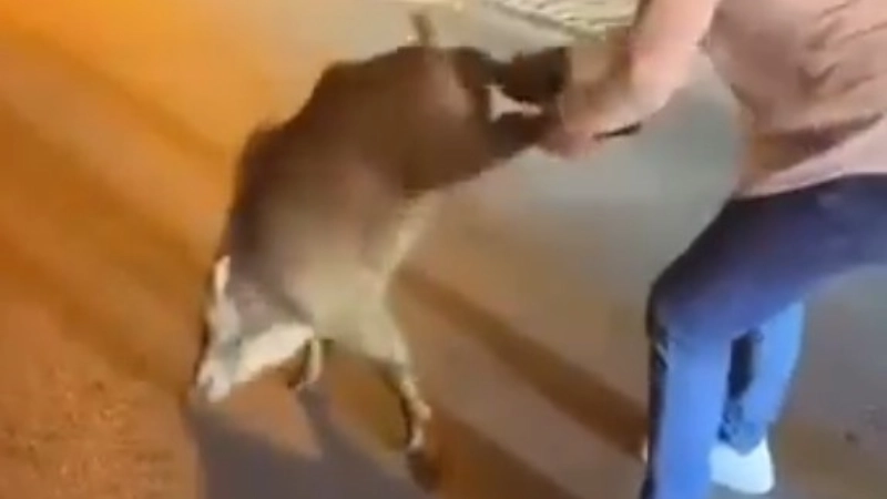 Aydın’ın Kuşadası ilçesinde şehre inen domuzları gören bir kişi, arka ayağından yakaladığı domuz ile adeta dalga geçti.Edinilen bilgiye göre, Kuşadası ilçesi Türkmen Mahallesi Hülya Koçyiğit Bulvarı üzerinde gece saatlerinde yiyecek bulmak için şehir merkezine inen bir grup domuzu gören 2 kişi, domuz sürüsünün peşinden gitti. O esnada bir kişi domuzu arka ayaklarından yakaladı. Kimliği bilinmeyen şahıs yol ortasında domuzu arka ayaklarından asılırken, kurtulmaya çalışan domuz ise bir süre çırpındı. O esnada diğer şahıs ise yaşananları kayıt altına aldı. Adeta domuzla dalga geçen gençlerin görüntüsü sosyal medyada da paylaşıldı. Bir süre çırpınan domuz, son anda kurtulup olduğu yerden kaçarak uzaklaştı.