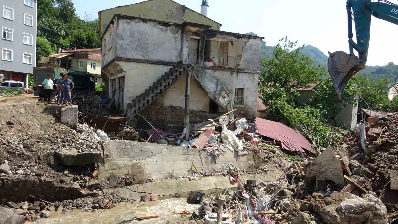 Giresun’da önceki akşam saatlerinde başlayan ve gece şiddetini artıran yağışlar sonrası Tirebolu’nun Köseler köyünde bir evin devrildiği, 4 evin de hasar gördüğü geceyi yaşayanlar o anları anlattılar. Heyelan sonucu evin yatak odasına toprak yığınları dolan Necla Balkaya son anda 2 çocuğuyla evden çıkarak hayatını kurtardığını anlatırken, yıkılan evin sahibi Hatice Demiral ise torunları ve çocuklarıyla yaylada olduğu için kurtulduklarını ifade etti.Giresun’da önceki akşam etkili olan sel felaketinde en çok zarar gören Tirebolu’nun Köseler köyünde 1 ev yıkılırken 4 ev de zarar gördü. Yıkılan ve zarar görev ev sahipleri ise o geceyi anlattılar.Yıkılan evin boş olması faciayı önlediTirebolu ilçesine bağlı Köseler köyünde evi yıkılan Hatice Demiral, selin yaşandığı gece aile olarak Espiye ilçesine bağlı Karaovacık yaylasında olduklarını söyledi. Fındık hasat döneminin yaklaşması nedeniyle çocukları ve torunlarının da köye geldiklerini ifade eden Demiral, "O gün yaylaya gittik, evde değildik. Çok yağmur yağınca evin altı uçmaya başlamış. O zaman ev gitmiş. O gece evde 10 kişi olacaktık. Hep birlikte giderdik. Hep ev patlamış" dedi.Yaşadığı dehşeti anlattı, 2 çocuğuyla molozların arasından çıktıKöseler köyünde evi heyelan nedeniyle hasar gören Necla Balkaya ise 19 Temmuz gecesi evde çocuklarıyla birlikte bulunduğunu söyleyerek, "Arka odada yatıyorduk. Daha sonra salona geçtik. 2-3 dakika sonra arka odadan bir gürültü geldi. Baktığımda toprak yığıldığını gördüm. Molozları açarak çocuklarımı aldım ve dışarı çıktık. Arabama binerek Tirebolu’ya doğru yola çıktık ama heyelanların arasında kaldık. Akrabalarımdan yardım istedim. Gelip bizi kurtardılar ve güvenli yere aldılar" diye konuştu.Hasarın izlerini silme çalışmaları devam ediyorGiresun merkez ile Tirebolu, Espiye ve Doğankent ilçelerinde yaşanan sel ve heyelanların ardından valilik koordinesinde ilgili kurumlarca çalışmalar başlatıldı. Tirebolu ilçesine bağlı Köseler köyünde yan yatan evin yıkımı gerçekleştirilirken, DSİ tarafından il genelinde taşkınların yaşandığı derelerde ise çalışmalar devam ediyor. Sağanak nedeniyle il genelinde 20 köy yolunda yaşanan heyelanlar İl Özel İdaresi ekipleri tarafından temizlendi. Köy yollarında ulaşımlar yeniden sağlanmaya başlandı. AFAD ekipleri de söz konusu bölgelerde hasar tespit çalışmalarını sürdürüyor.