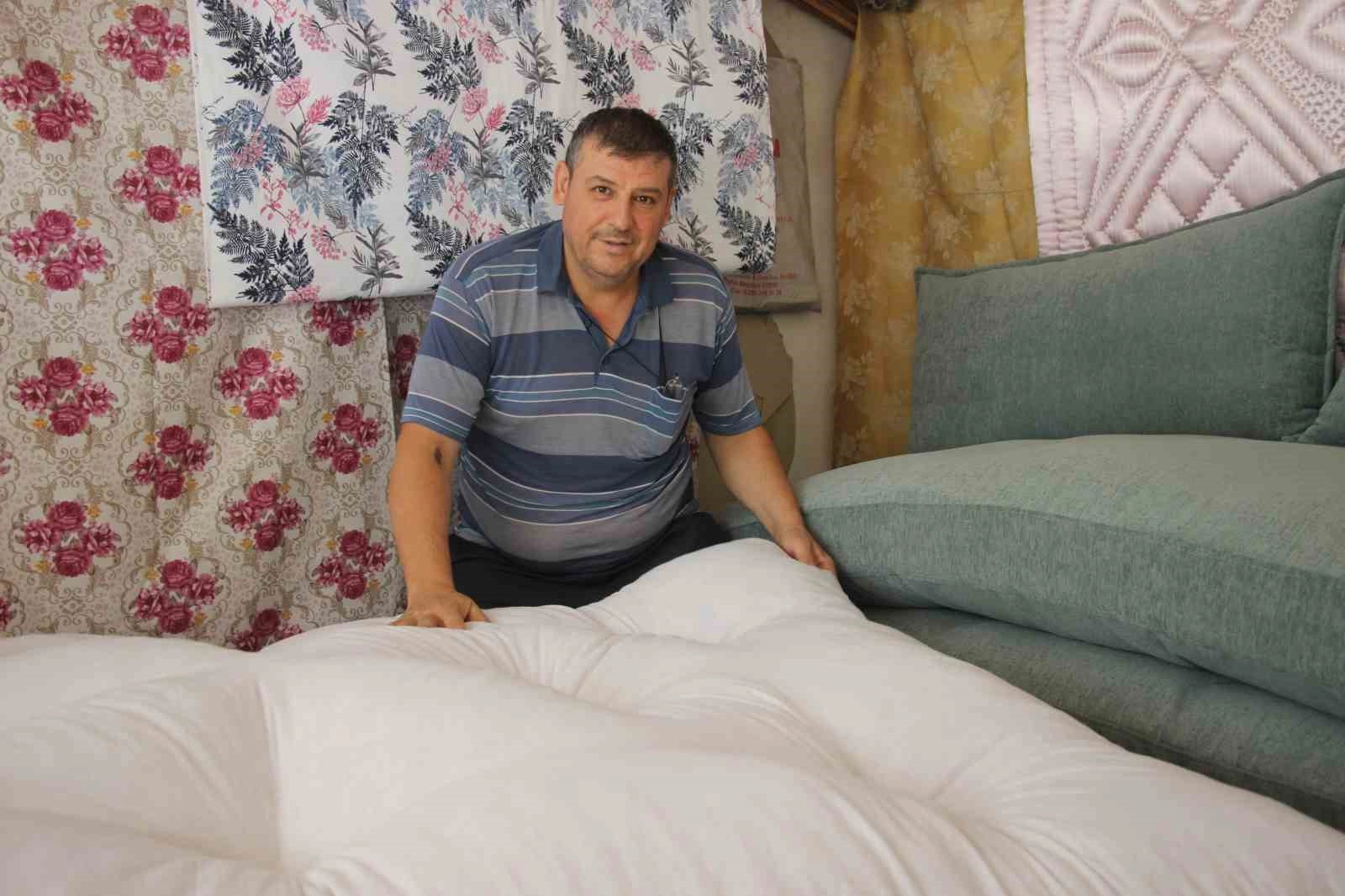 Türkiye’nin en sıcak illerinden olan Aydın’da yaz gecelerinde serin bir uyku arayan vatandaşların tercihi evlerin balkonları oluyor. Balkonlarda en yaygın olarak kullanılan elyaftan yatak, yastık ve yorganların sağlıksız olduğunu belirten yorgancılar, sağlıklı bir uyku için pamuk ve yünden yapılmış ürünlerin tercih edilmesi gerektiğini vurguluyor.Sağlıklı bir uyku için sıcak yaz gecelerinde balkonları tercih eden vatandaşların yatak, yorgan ve yastık seçiminde dikkatli olmaları, kaliteli ve doğal malzemelerden üretilmiş ürünleri tercih etmeleri büyük önem taşıyor. Aydın’daki yorgancılar, vatandaşlara daha sağlıklı bir uyku deneyimi sunmak için pamuk ve yünden yapılmış yatak ve yorganları öneriyor. Bu ürünlerin hem sağlık açısından hem de konfor açısından daha iyi olduğu kaydeden yorgancılar, elyafın terlemeyi artırarak uyku kalitesini düşürdüğünü, pamuk ve yünün ise doğal malzemeler olmaları nedeniyle daha iyi hava geçirgenliği sağlıyor ve terlemeyi minimize ettiğini belirtiyor.37 yıldır yorgancılık mesleğiyle uğraşan ve 27 yıldır kendi iş yerini işleten Bahattin Zeytindalı, sağlıklı uyku için vatandaşlara önemli tavsiyelerde bulundu. 1987 yılında ilkokuldan çıkınca direkt yorgancının yanında çırak olarak işe başladığını, o günden bu yana da mesleğini severek yaptığını belirten Bahattin Zeytindalı, "1996 yılına kadar çıraklık ve kalfalık dönemi geçirdim. Sonrasında askere gittim ve döndüğümde 1997 yılında kendime ait iş yerimi açtım. O yıldan bu yana kendi işimi yapıyorum. Allah’a şükür belli bir kesim müşterimiz de var" dedi.Günümüzde yaygın olarak kullanılan elyaf yatak, yorgan ve yastıkların sağlıksız olduğunu belirten Zeydindalı, "Günümüzde elyaflar daha çok kullanılıyor ama sağlıklı değil. Eskiden yün veya pamuk üzerine durulurdu ama artık elyaflar tercih ediliyor. Bu işte en sağlıklısı yün. Çünkü yazın serin, kışın da sıcak tutar. Yünlerin yıkayıp temizlemesi zor olduğu için pamuk daha fazla ön plana çıkıyor. Elyafa göre daha sağlıklı, yatak, yorgan, yastık hepsini yapıyoruz. Daha kullanışlı, daha rahat ve daha güzel. Elyafın yanında daha sağlıklı. En sağlıksız olan elyaf ama şu zamanda en çok da kullanılan elyaf. Elyafın ham maddesi petrol, elyaf naylon" diye konuştu.Pamuk yatak ve yorganların ağırlığının insanları zorladığını belirten Zeytindalı, "Artık pamukları az kullanıp aynı elyaf yorgan gibi daha ince yorganlar dikiyoruz. Yatakların üzerine şilte yapıyoruz. Sünger ile teması kesmek için, kaldırıp koyması daha kolay olsun diye böyle ürünler hazırlıyoruz. Pamuk yatak yorganı ağır olduğu için tercih etmediklerinden dolayı bunu inceltip o şekilde yapıyoruz. Bu tarz ince dikimler, yatakların üzerine koyup yatmak için daha rahat ve sağlıklı. Normal kullanmak için de ince yatak yapabiliriz, daha çabuk basılır. Basılsa da her şeyden daha sağlıklı olduğu için buna değer bence. Çekyatlar da olsa oturma grupları da olsa hepsi sünger. Onların üzerlerine de sünger ile teması kesmek ve yatmak için kullanmak için yapılıyor" ifadelerini kullandı.Sağlıklı bir uyku için yün ve pamuk ürünlerin önemine dikkat çeken Bahattin Zeytindalı, elyaf ve sünger gibi petrol türevlerinden yapılan ürünlerin sağlık açısından risk taşıdığını belirtti. Sağlıklı bir uyku için yün ve pamuk tercih edilmesi gerektiğini vurgulayan Zeytindalı, bu ürünlerin doğal ve sağlıklı olmasının yanı sıra konforlu bir uyku sağladığını ifade etti.