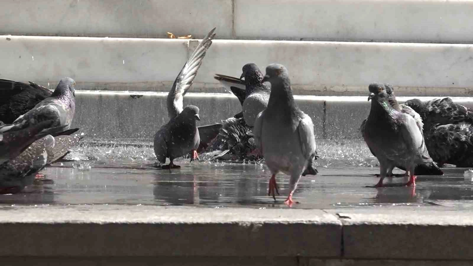 Hava sıcaklıklarının mevsim normallerinin üstünde seyrettiği Bursa’da, güvercinlerin banyo keyfini görenlerin içi serinledi.Sıcak havalardan insanlar kadar hayvanlar da etkilendi. 15 Temmuz Demokrasi Meydanı’nda bir esnaf, sıcaktan bunalan güvercinlerin imdadına yetişti. Meydanda bulunan çeşmeye hortum takan esnaf, kuşlara su tutarak serinletti. Buz gibi suyun altında rahatlamaya çalışan güvercinlerin kanatlarını kaldırıp çırpınması renkli görüntüler oluşturdu.Hava sıcaklıklarından hayvanların da çok etkilendiğini belirten vatandaş, "Burada güvercinlerin serinlemesi için elimden geldiği kadar yardımcı olmaya çalışıyorum. Bazen günde 2 defa olmak üzere sabah ve akşam saatlerinde güvercinleri serinletiyorum. Yem alıyorum onların yeterli beslenmelerini de sağlıyorum. Serinlerken güvercinlerin hareketlerini izlemek gerçekten zevkli. Onlar serinleyince bizim de içimiz rahatlıyor" ifadelerini kullandı.
