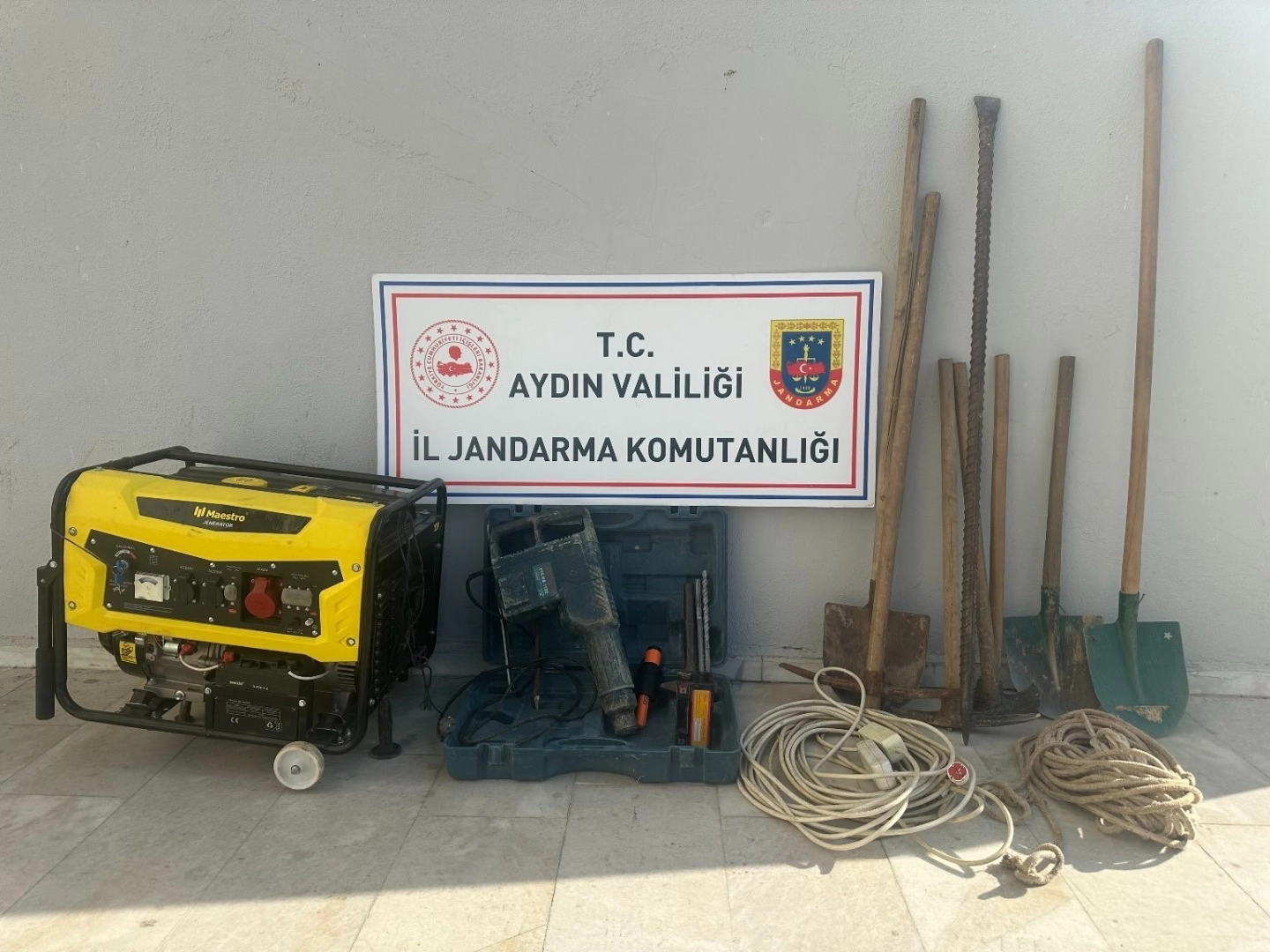 Aydın’ın Efeler ilçesinde tarihi eser bulmak için kaçak kazı yapan 4 şüpheli, açtıkları 3 metrelik çukurda suçüstü yakalandı.Efeler İlçe Jandarma Komutanlığınca tarihi eser kaçakçılığına yönelik çalışma gerçekleştirildi. Edinilen bilgiye göre Efeler ilçesi Kızılcaköy Mahallesi’nde N.O., M.E., O.A. ve O.A. isimli 4 şüpheli şahıs tarihi eser bulmak amacıyla kaçak kazı yaptı. Harekete geçen ekipler, şüphelileri açtıkları 3 metre derinliğindeki çukurda suçüstü yakaladı. Yapılan aramalarda ise 1 adet dedektör, 1 adet jeneratör, 1 adet akü, 20 metre uzatma kablosu ve 16 parça çeşitli kazı malzemeleri ele geçirildi. Yakalanarak gözaltına alınan şüpheli şahıslar hakkında başlatılan adli süreç devam ediyor.
