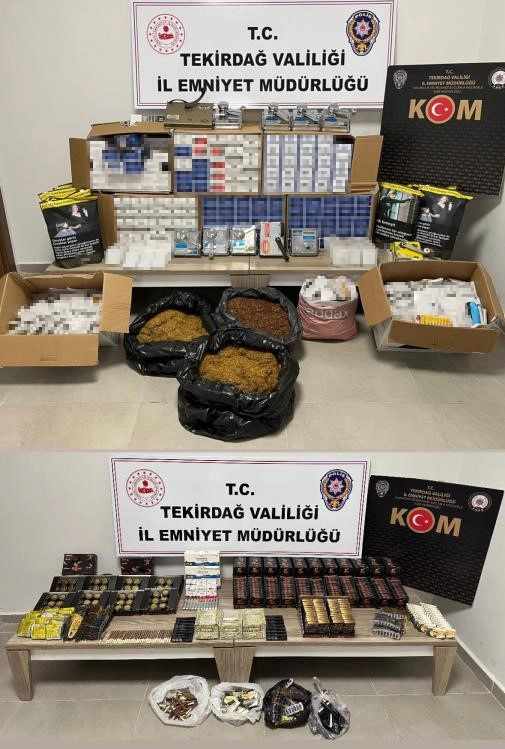 Tekirdağ’da düzenlenen operasyonda cinsel içerikli ilaçlar ve çeşitli tütün mamulleri dahil çok sayıda kaçak ürün ele geçirilirken, 2 şüpheli hakkında yasal işlem başlatıldı.Tekirdağ İl Emniyet Müdürlüğü’ne bağlı Kaçakçılık ve Organize Suçlarla Mücadele Şube Müdürlüğü ekipleri, Süleymanpaşa ilçesinde düzenledikleri operasyonda cinsel içerikli ilaçlar, tütün mamulleri ve sigara doldurma makineleri başta olmak üzere çok sayıda kaçak ürüne el koydu. Operasyonda toplam 3 bin 375 adet cinsel içerikli ilaç, 630 adet cinsel içerikli gıda, 66 bin 400 adet boş makaron, 16 bin 840 adet dolu makaron, 4 bin 102 adet sigara sarma kağıdı, 41,5 kilogram tütün, 93 adet puro ve 13 adet sigara doldurma makinesi ele geçirildi. 2 şüpheli hakkında TCK 186, 4733 ve 5607 sayılı kanunlar çerçevesinde yasal işlem başlatıldı.