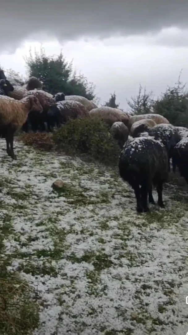 Tokat’taki Kızkayası Yaylası’nda aniden başlayan dolu yağışı çevreyi beyaza bürürken, hayvanlarını otlatan çoban zor anlar yaşadı.Turhal ilçesine bağlı Kızkayası Yaylası’nda bir çoban, küçükbaş hayvanlarını otlatırken aniden başlayan dolu yağışı zor anlar yaşattı. Kısa sürede etkisini artıran dolu, yaylanın yemyeşil otlarını tamamen beyaz örtüyle kapladı. Şiddetli dolu yağışına yakalanan koyun ve kuzular, birbirlerine sokularak korunmaya çalıştı. Yaşanan anlar, çobanın cep telefonuyla kayda alındı.