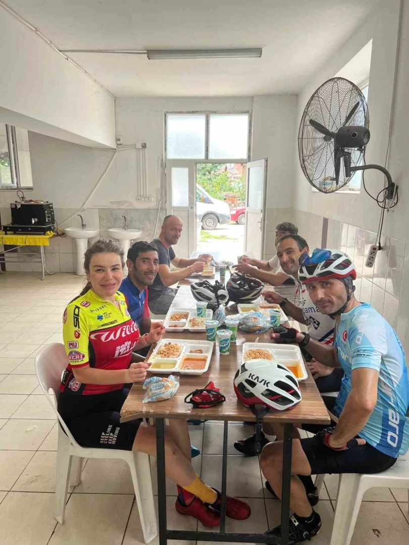 Eskişehir’den yola çıkan bisikletçiler yemek için yer ararken düğün yemeğine davet edildi. Düğünde yemek yiyip eğlenen bisikletçiler, evlenen çifte mutluluklar diledi.Eskişehir’den Sarıcakaya ilçesi Mayıslar mahallesine, buradan da Mihalgazi ilçesi üzerinden Alpagut yoluna geçen bisikletçiler, yemek için bir yer ararlarken yerel halk tarafından düğün yemeğine davet edildi. Daveti kabul eden ve düğün yemeği yiyen bisikletçiler güler yüzle oradan ayrılırken davetten çok memnun olduklarını dile getirdi. Bisikletçi Özlem Sakarya “Eskişehir Sarıcakaya’dan Alpagut yoluna geçerken yemek için bir yer arıyorduk. Yerel halka denk geldik, onlarda her zaman ki gibi tüm sıcakkanlılığı ile bizi düğün yemeğine davet etti. Biz bisikletçiler tanrı misafiri olarak düğünlerine dahil olmuş olduk ve çok memnun kaldık tekrardan çok teşekkür ediyoruz. Evlenen çifte de sonsuz mutluluklar diliyoruz” dedi.