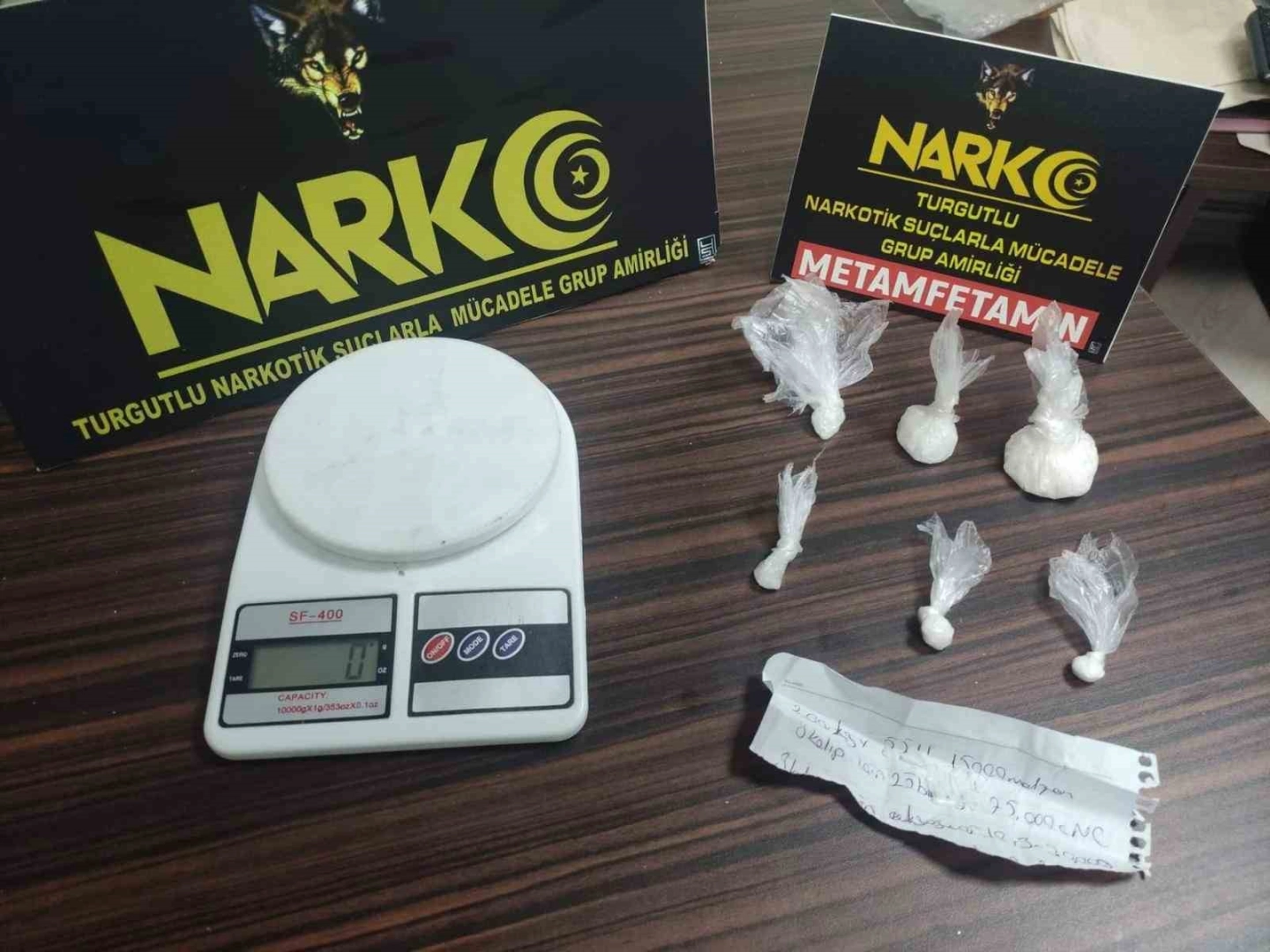 Manisa’nın Turgutlu ilçesinde uyuşturucu ve uyarıcı madde imal ve ticareti yapan şahıslara yönelik yapılan sokak çalışmalarında gözaltına alınan 2 kişi tutuklandı.Manisa İl Emniyet Müdürlüğü Narkotik Suçlarla Mücadele Şubesi Turgutlu NSM Büro Amirliği tarafından uyuşturucu ve uyarıcı madde imal ve ticareti yapan şahıslara yönelik yapılan sokak çalışmaları kapsamında; F.T. (43) isimli şahıstan 2 gram, H.G. (32) isimli şahıstan 1.60 gram metamfetamin maddesi ele geçirildi. Şahıslara ait işyerinde yapılan aramalarda ise; 3 parça halinde 1.55 gram, 6.60 gram, 17.20 gram metamfetamin maddesi ile 1 adet hassas terazi ele geçirildi. Olayla ilgili gözaltına alınan F.T. ve H.G. isimli şahıslar, uyuşturucu ve uyarıcı madde imal ve ticareti yapmak suçundan çıkarıldıkları mahkemece tutuklandı.