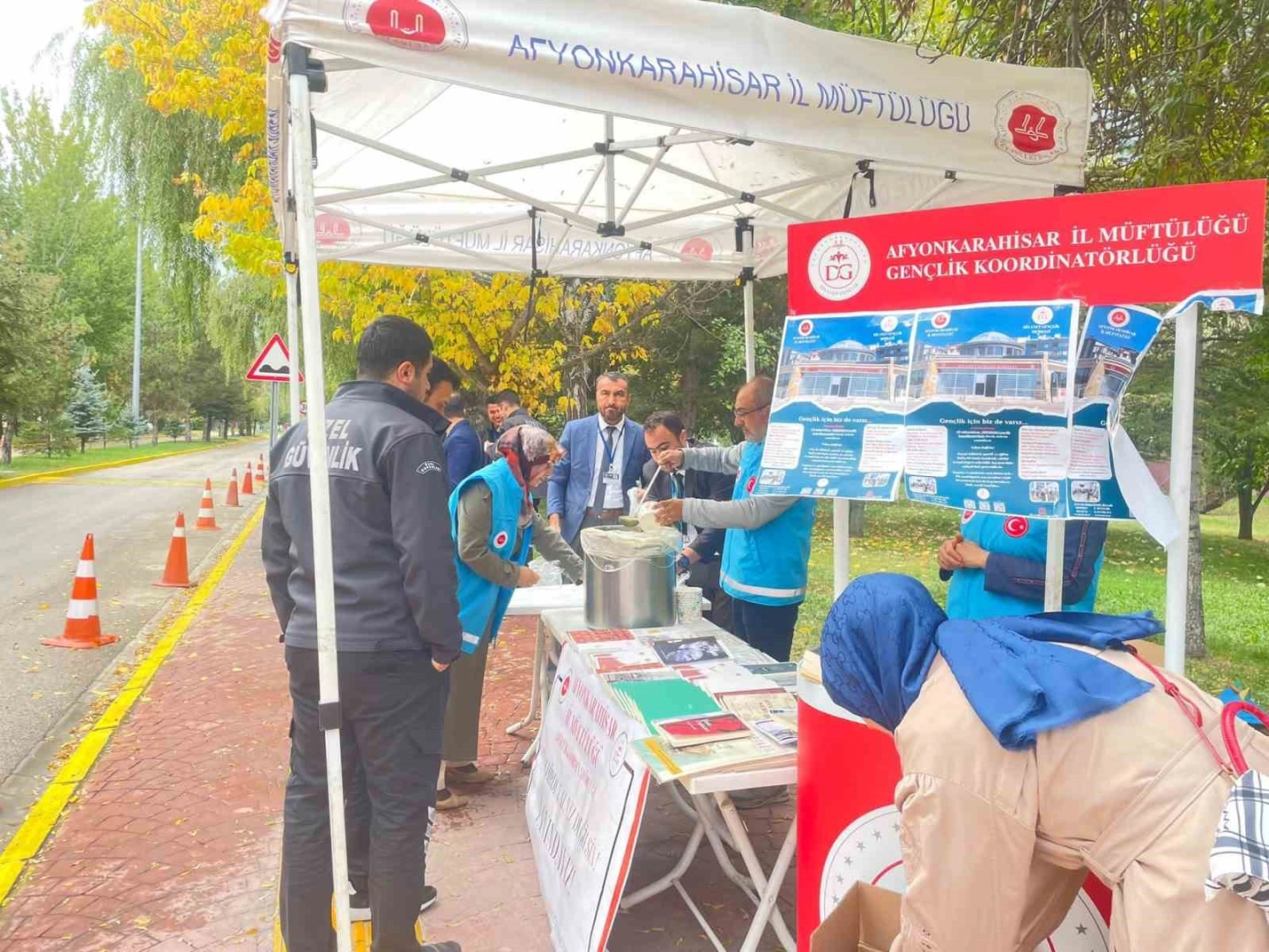 2024-2025 eğitim öğretim yılının başlaması dolayısıyla Afyonkarahisar İl Müftülüğü Gençlik Koordinatörlüğü, Afyonkarahisar Sağlık Bilimleri Üniversitesi’nde karşılama, tanıtım ve kitap standı açtı.Gençlik Koordinatörleri sorumluları, Merkez ve KYK Yurtlarında, AFSÜ Hastanesinde görev yapan Manevi Danışmanların yer aldığı stantta, öğrencilere çorba ve çeşitli ikramlar dağıtıldı. "Bu şehirde yalnız değilsiniz " sloganıyla gençlere tanıtım yapıldı. Gençlerin yoğun ilgi gösterdiği Diyanet Gençlik standında, Diyanet Gençlik Merkezinde yapılması planlanan dersler ve faaliyetler tanıtılarak, Diyanet İşleri Başkanlığı yayınları hediye edildi.