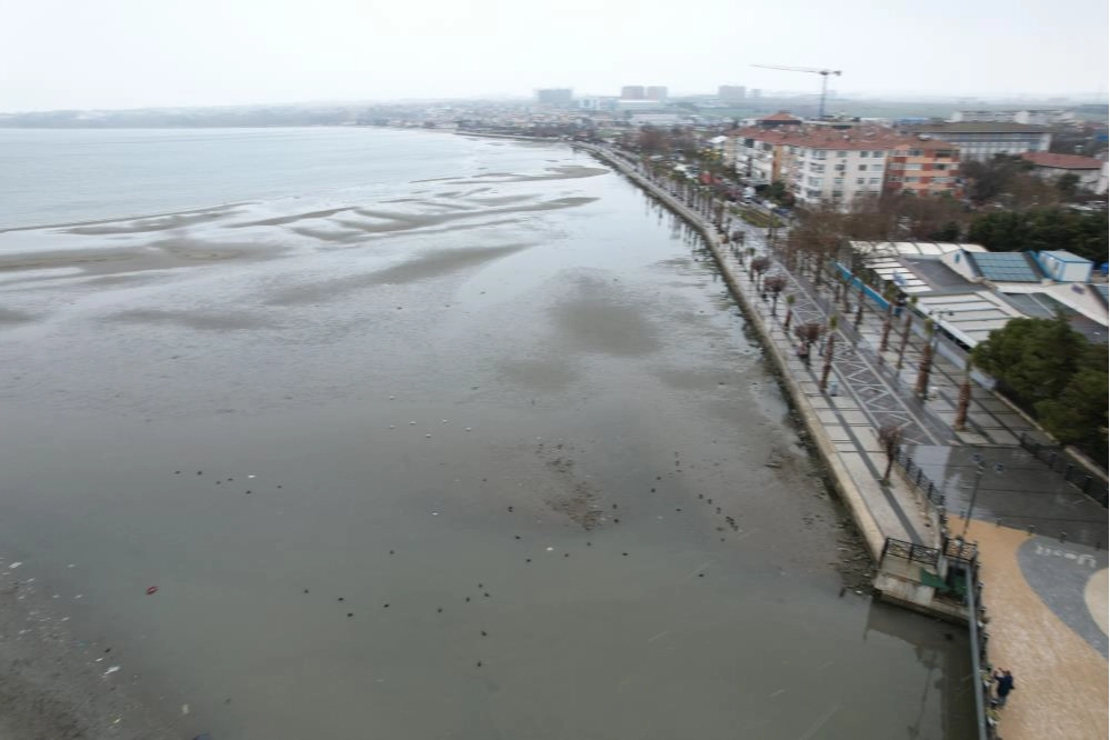 İstanbul Silivri’de Marmara Denizi, yaklaşık 150 metre çekildi. Denizin çekilmesiyle küçük adacıklar oluştu.