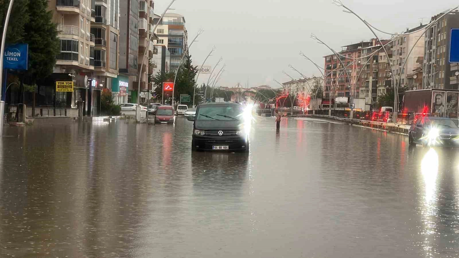 Uşak’ta etkili olan sağanak yağış sonrası yollar göle döndü.Meteoroloji Genel Müdürlüğü’nün sağanak yağış ve fırtına uyarısı yaptığı Uşak’ta beklenen yağış kent genelinde akşam üzeri saatlerinde başladı. Yağmurla birlikte araçlar göle dönen yollarda güçlükle ilerlerken, yoldan karşıdan karşıya çalışan vatandaşlar ise zor anlar yaşadı. Şiddetli yağan yağmur suları bazı yolları ulaşıma kapatırken, çok sayıda iş yerini ve evi su bastı. İhbar üzerine bölgelere polis, itfaiye ve belediye ekipleri sevk edildi. Polis ekipleri yollarda güvenlik önlemi alırken, belediye ekipleri ve vatandaşların kendi imkanlarıyla müdahalesi ile yollar yeniden trafiğe açıldı.Öte yandan bazı esnaflar da dükkanlarına su basmaması için önlem aldı.
