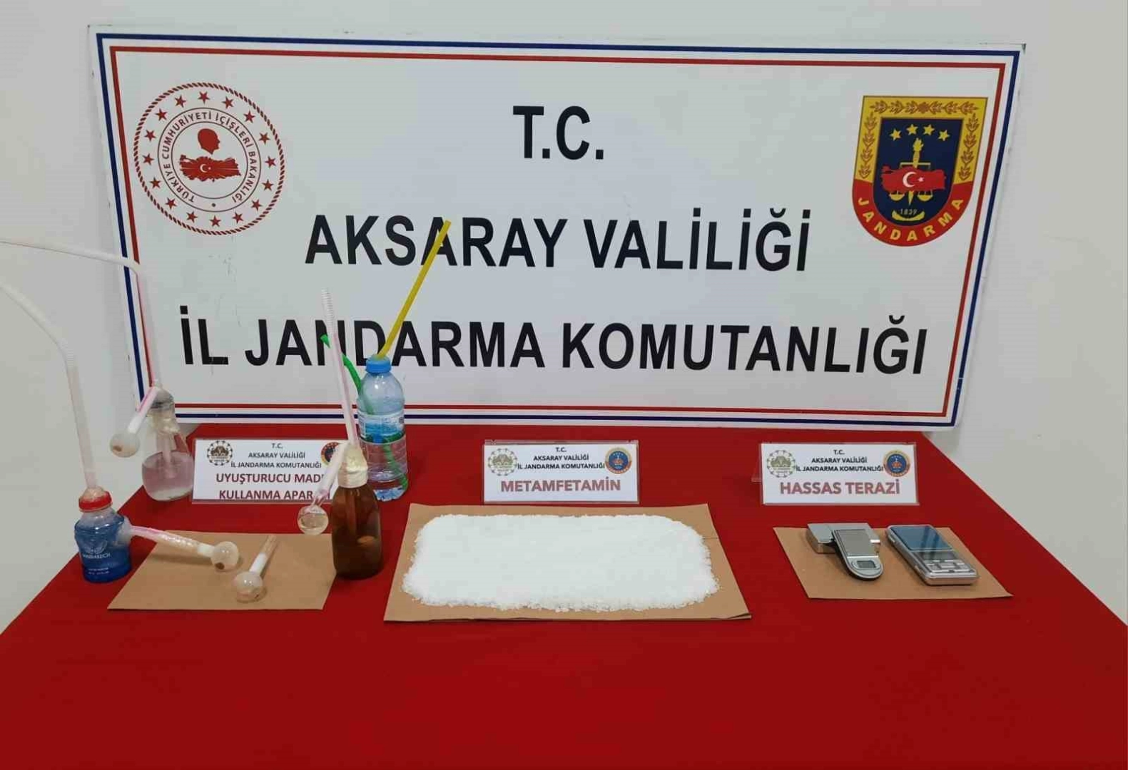 Aksaray’da uyuşturucu imal ve ticareti yaptığı tespit edilen şüpheliye yönelik operasyonda 1 kilo 197 gram metamfetamin maddesi ele geçirildi. Gözaltına alınan şüpheli sevk edildiği adli makamlarca tutuklanarak cezaevine gönderildi.Operasyon Aksaray merkezde bulunan bir iş yeri ofisine yönelik gerçekleştirildi. Edinilen bilgiye göre, uyuşturucuyla mücadele çerçevesinde çeşitli çalışmalar yapan İl Jandarma Komutanlığı İstihbarat Şubesi ekipleri bir şahsın uyuşturucu imal ve ticaretini yaptığı bilgisine ulaştı. Bunun üzerine Aksaray Cumhuriyet Başsavcılığı koordinesinde Merkez İlçe Jandarma Komutanlığı ekipleriyle harekete geçen jandarma istihbarat ekipleri kimliğini tespit ettikleri şüpheli M.G.’nin ikametini takibe aldı. Bir süre yapılan teknik ve fiziksel takibin ardından yeterli delile ulaşan jandarma ekipleri operasyon için düğmeye bastı. Şahsın bulunduğu iş yerine yönelik gerçekleştirilen operasyonda şüpheli yakalanarak gözaltına alınırken iş yerinde yapılan aramada 1 kilo 197 gram metamfetamin maddesi, 5 adet uyuşturucu madde kullanma aparatı, 2 adet hassas terazi ele geçirildi. İl jandarmadaki işlemlerinin ardından adli makamlara sevk edilen şahıs tutuklanarak cezaevine gönderildi.