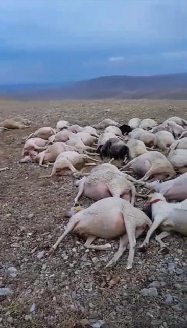 Afyonkarahisar’da arazide otlayan sürünün üzerine yıldırım düşmesinin ardından başlatılan incelemede, telef olan koyun sayısının 60 olduğu belirlendi.Olay, Emirdağ ilçesi Çaykışla köyünde meydana geldi. Edinilen bilgilere göre, arazide koyun otlatan A.Ü. ve K.K. isimli kişilerin sürüsünün üzerine yıldırım düştü. Olayda her iki sahsa da ait 60 koyun telef oldu. Çobanlar yıldırım düşmesinden son anda kendilerini kurtarırken, olayla ilgili jandarma tarafından inceleme başlatıldı.