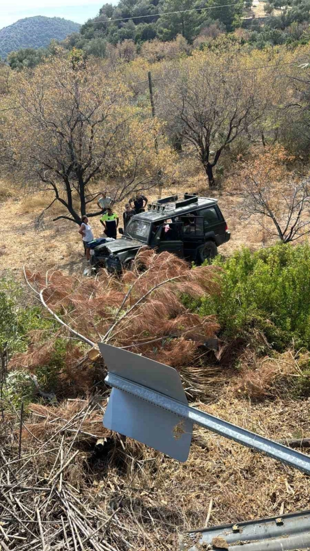 Muğla’nın Datça ilçesinde virajı alamayan lüks cipin tarlaya uçması sonucu meydana gelen kazada 3 kişi yaralandı.Kaza, Datça ilçesi Mesudiye Mahallesi’nde meydana geldi. Edinilen bilgiye göre seyir halindeki lüks cip, henüz bilinmeyen bir nedenle virajı alamadı. Savrulan araç yol kenarında bulunan su deposunun üzerinden tarlaya uçtu. Kazada araç içerisinde bulunan 3 kişi yaralandı. Kazayı görenler durumu 112 Acil Çağrı Merkezi’ne bildirdi. İhbar üzerine bölgeye jandarma ve sağlık ekipleri sevk edildi. Kısa sürede olay yerine gelen sağlık ekipleri ilk müdahalenin ardından yaralıları, ambulansla hastaneye kaldırdı. Kaza ile ilgili inceleme başlatıldı.