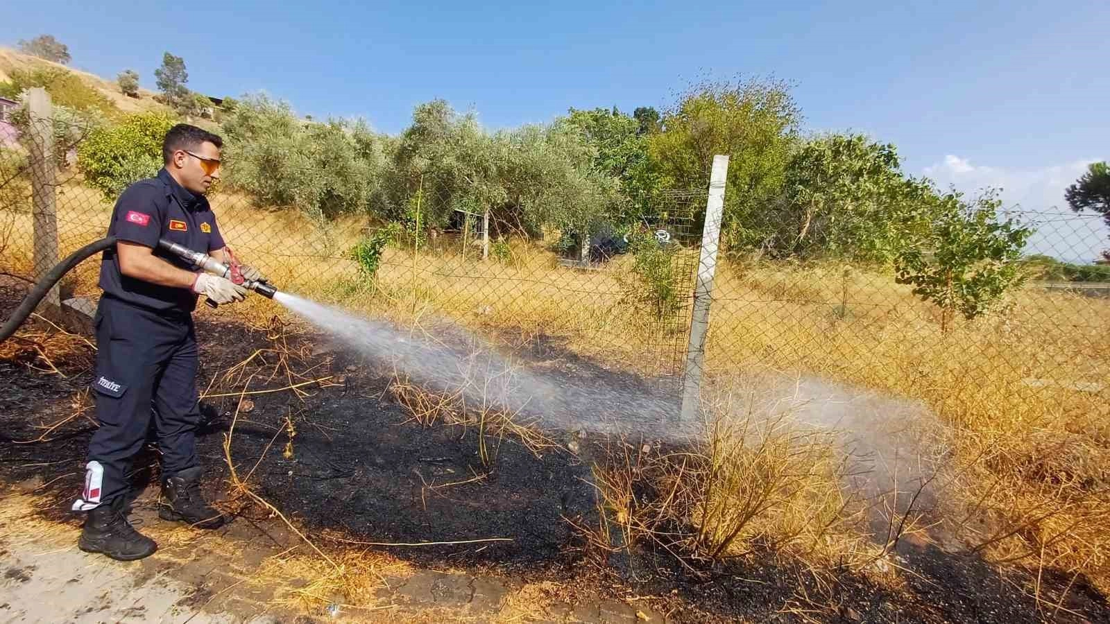 Aydın’ın Efeler ilçesinde yol kenarında tutuşan kuru otlar, itfaiyenin hızlı müdahalesiyle, bahçeye sıçramadan söndürüldü.Yangın, Efeler ilçesi Kemer Mahallesi 1674 Sokak üzerinde meydana geldi. Edinilen bilgiye göre yol kenarında bulunan kuru otlar henüz bilinmeyen bir nedenle tutuştu. Alevleri fark eden mahalle sakinleri durumu 112 Acil Çağrı Merkezi’ne bildirdi. İhbar üzerine bölgeye itfaiye ve polis ekipleri sevk edildi. Kısa sürede olay yerine gelen ekipler, alevlere müdahale etti. Kısa süreli panik oluşturan yangın, ekiplerin hızlı müdahalesiyle bahçeye sıçramadan söndürüldü. Bölgede soğutma çalışmalarının gerçekleştirilmesinin ardından, yangının çıkış nedeni ile ilgili inceleme başlatıldı.