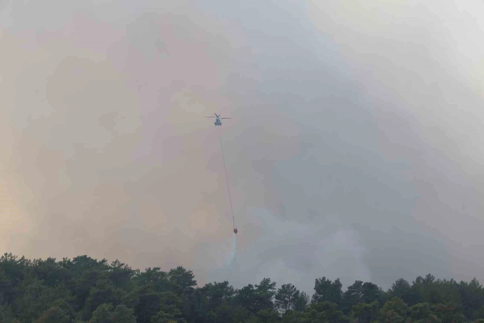 Muğla’nın Menteşe ilçesinde sarp arazide ormanlık alanda çıkan yangın rüzgarın etkisi ile büyürken, yangına havadan 9 helikopter ve 6 uçak müdahale ediyor.Yangın, öğle saatlerinde Sarnıç Mahallesi’ndeki sarp arazinin ormanlık alanında çıktı. Bölgede etkili olan rüzgar alevlerin geniş bir alana yayılmasını sağladı. Yangın ihbarının ardından bölgeye Muğla Orman Bölge Müdürlüğü yangın söndürme ekipleri ve Muğla Büyükşehir Belediyesi itfaiye ekipleri sevk edildi. Yangına ekipler karadan müdahale ederken, havadan 9 helikopter ve 6 uçak söndürme çalışmalarına katılıyor. Yangında yerleşim yerlerine tehdidinin bulunmadığı öğrenildi.