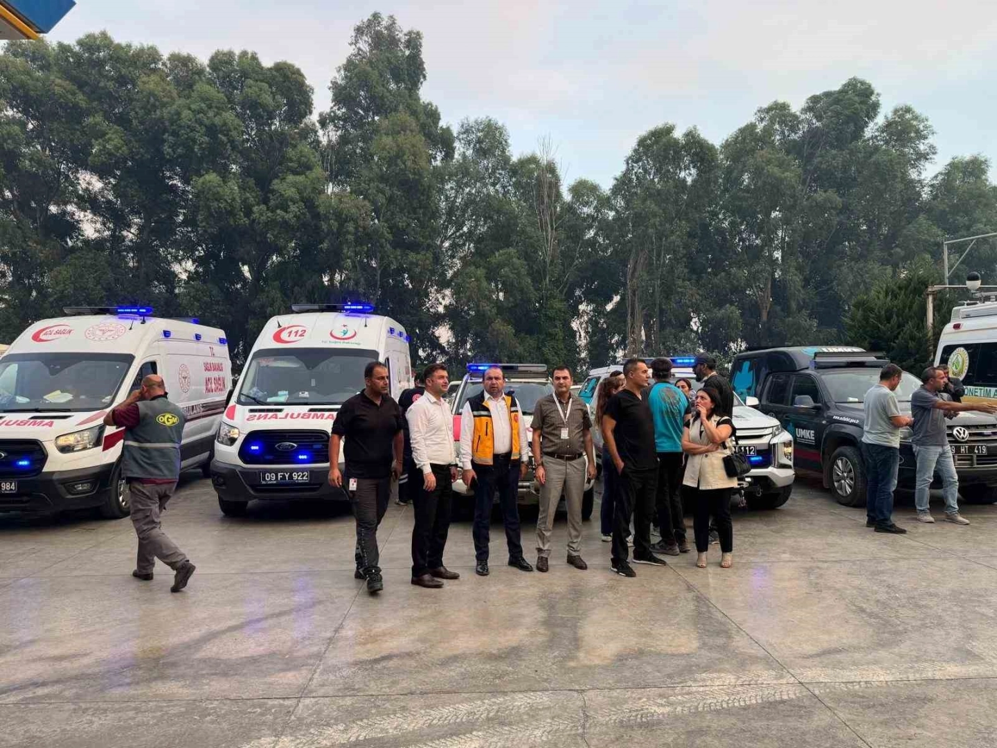 Aydın’ın Germencik ilçesinde başlayıp rüzgarın etkisiyle geniş alana yayılarak Söke ilçesine sıçrayan orman yangınında müdahale çalışmaları aralıksız devam ederken, şu ana kadar dumanlardan etkilenen 7 kişinin UMKE ve sağlık ekiplerince tedavisi yapıldı.Aydın’ın Germencik ilçesine bağlı Gümüşköy’de saat 14.30 sıralarında başlayan yangın, rüzgarın da etkisiyle geniş bir alana yayıldı. Söke ilçesi Argavlı Mahallesi’ne kadar ulaşan alevlere, havadan ve karadan yoğun bir şekilde müdahale devam ederken, söndürme çalışmaları 5,5 saattir aralıksız sürüyor. Yangının bir an önce söndürülmesi için ekipler yoğun çaba sarf ederken, bölgede hazır bulunan Aydın İl Sağlık Müdürlüğü Ulusal Medikal Kurtarma Ekibi Birimi (UMKE) ve 112 ekipleri dumanlardan etkilenenlere anında müdahale ediyor. Bölge oluşturulan Tıbbi Uç Nokta (TUN) alanlarında dumandan etkilenenlere ilk müdahale yapılırken, şu ana kadar toplamda 7 kişinin dumandan etkilendiği öğrenildi. Ekipler tarafından hızla müdahalesi yapılan 7 kişinin tedavileri gerçekleştirildi.Yangın söndürme uçak ve helikopteri ile havadan, çok sayıda tanker, TOMA, itfaiye ve orman araçlarıyla da karadan yapılan müdahaleler aralıksız sürerken, İzmir, Manisa ve Denizli’den de takviye ekipler gönderildi.