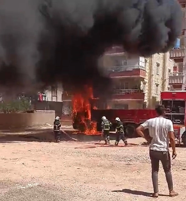 Gaziantep’in Nizip ilçesinde park halinde duran bir kamyon alev aldı. Kamyonun sahibi tarafından yeni alındığı ve yangının park edildikten sonra çıktığı öğrenildi.Yangın, bugün öğle saatlerinde Gaziantep’in Nizip ilçesine bağlı Atatürk Mahallesi’nde meydana geldi. İddiaya göre, sahibinin yeni aldıktan sonra park ettiği 27 ATF 508 plakalı kamyon bilinmeyen bir nedenle yanmaya başladı. Yangın, çevrede paniğe yol açarken, mahalle sakinleri durumu hemen itfaiyeye bildirdi. Olay yerine kısa sürede gelen itfaiye ekipleri, yangına müdahale ederek alevleri kontrol altına aldı. Elektrik kontağından çıktığı iddia edilen yangın kamyoneti kullanılamaz hale getirdi.Yangınla ilgili soruşturma başlatıldı.