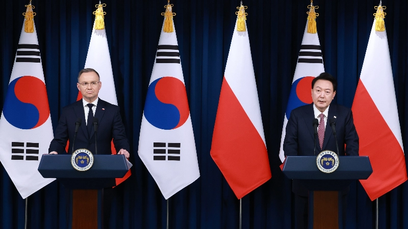 Polonya Devlet Başkanı Andrzej Duda, Güney Kore'ye 4 günlük resmi ziyaret gerçekleştirdi. Duda, temasları çerçevesinde başkent Seul'de Güney Kore Devlet Başkanı Yoon Suk Yeol ile görüştü. Görüşmenin ardından ortak basın toplantısı düzenleyen Yeol ve Duda, Güney Kore'nin K2 tanklarının yıl sonuna kadar Polonya'ya ihracatı için yeni bir sözleşme imzalanması konusunda anlaştı.