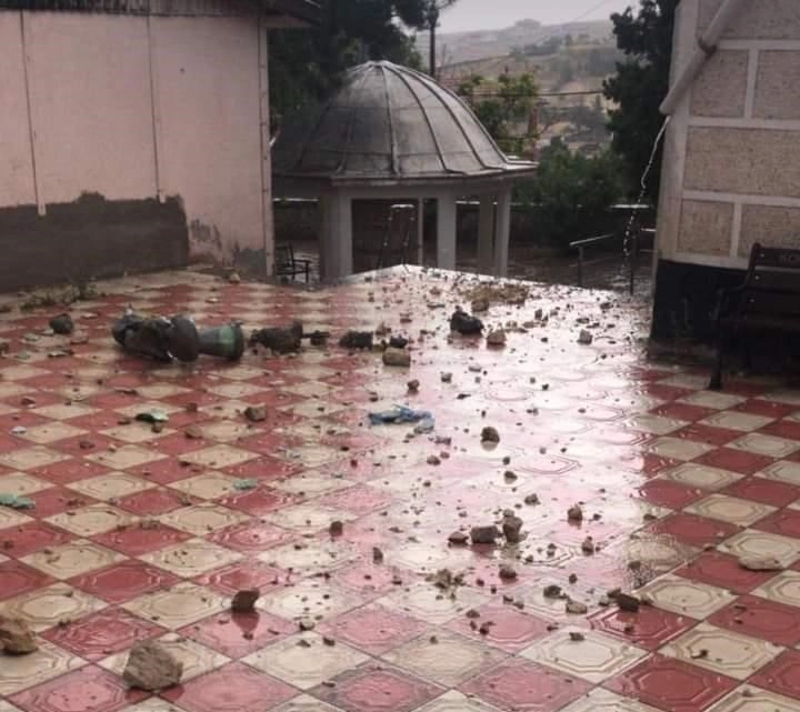 Konya’nın Kulu ilçesinde yıldırım düşmesi sonucu cami minaresinin alemi koptu.Edinilen bilgiye göre, Kulu ilçesi Kömüşini Mahallesi’nde etkili olan gök gürültülü sağanak sırasında mahalle camisinin minaresine yıldırım düştü. Yıldırımın etkisiyle minarenin alemi ve paratoneri hasar gördü. Caminin minaresinden kopan parçalar ise etrafa saçıldı. Yıldırımın caminin bütün kablolarını da yaktığını belirten mahalle muhtarı Hasan Tekin, camide hasar oluştuğunu söyledi.