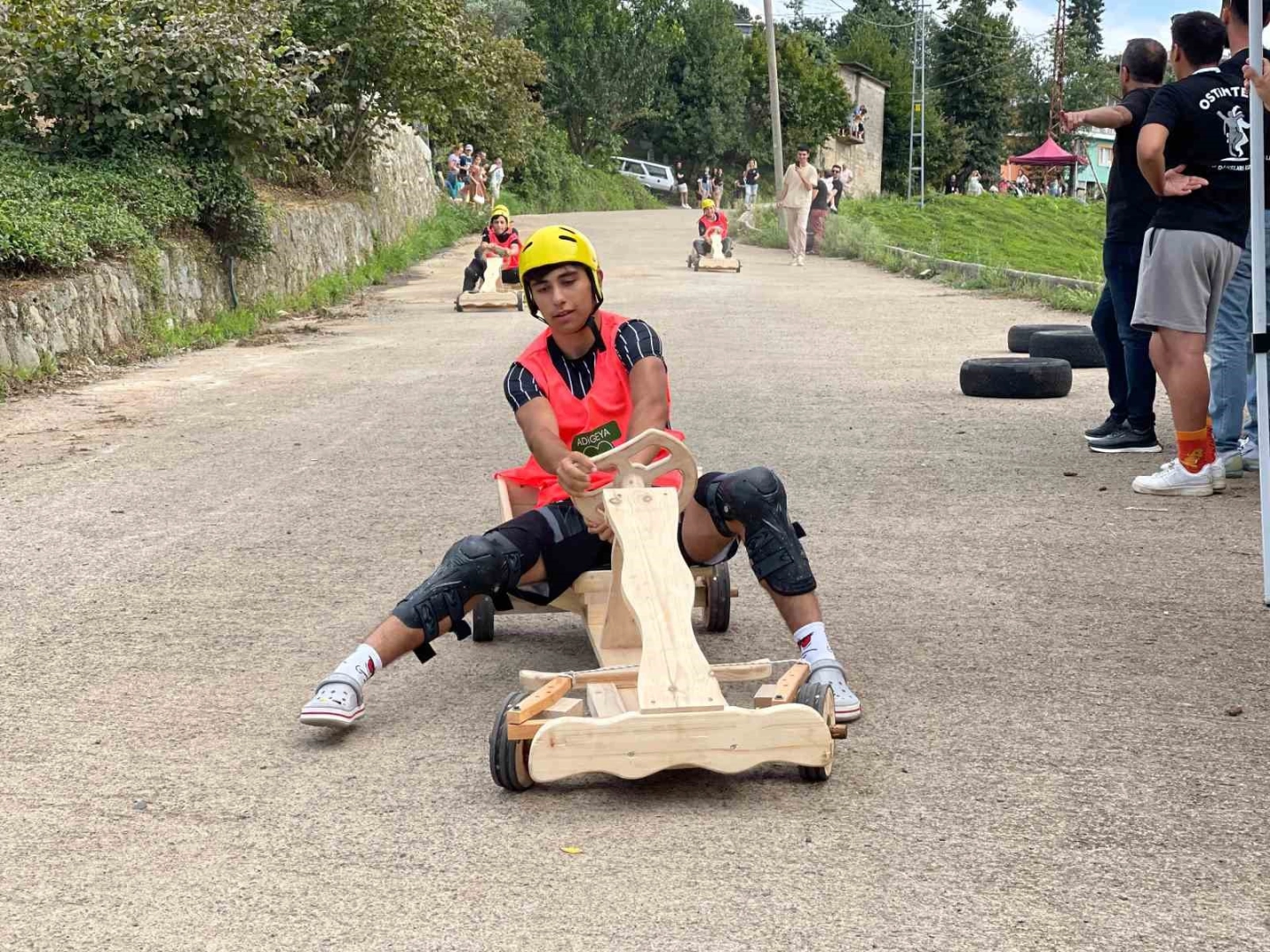 Rize’de bu yıl 13.’sü düzenlenen Uluslararası Tulum ve Kemençe Festivali için 10 farklı ülkeden gelen dansçılar tahta arabalar ile yarıştılar.Rize’nin Ardeşen ilçesine bağlı Işıklı Köyü Konaktepe mahallesinde bu yıl 13. kez düzenlenen festival çerçevesinde 10 ülkenin dansçıları tahta araba yarışlarında kıyasıya mücadele etti. Formulaz Tahta Araba Yarışması’na, erkekler ve kadınlar kategorilerinde 20 kişi yarıştı. Eleme usulü ile yapılan yarışlarda ilk iki turda 5’erli şekilde yarışan 10 kişiden 4’ü finalde boy gösterdi. Tahta araba yarışlarında ise, kadınlar ve erkekler kategorisinde Adigeya birinci oldu.“Cidden çok keyifliydi”Yarışmaların kendileri için keyifli geçtiğini belirten Ceren Köseoğlu, “Çok keyifliydi. Ben Türkiye adına Ankara’dan katıldım. Daha önce hiç birinci olmadım. Katılmamıştım ama cidden çok keyifliydi. Bana iki kere çarptılar. Normalde ilk önce ben çıkmıştım. Bana iki kez çarpınca arabam ters döndü. Eskiden böyle bir arabaya binmiştim. Ama bu kadar profesyoneline ilk kez bindim. Biz elle yapıyorduk” ifadelerini kullandı.“Yarış heyecanlı ve güzel geçti”Yarışmaya katılan İran Türklerinden Aylin Mortazavi, yarışmanın kendisi için heyecanlı olduğunu söyleyerek “Çok güzeldi. Çok heyecan verici bir yarıştı. Geçen sene de katılmıştım. O yıl bilmiyordum. Geçmiş yılda ilk yerde takılmıştım. Bu yıl sonuna kadar gelmeyi çalıştım ve başardım. Yarış heyecanlı ve güzel geçti” şeklinde konuştu.