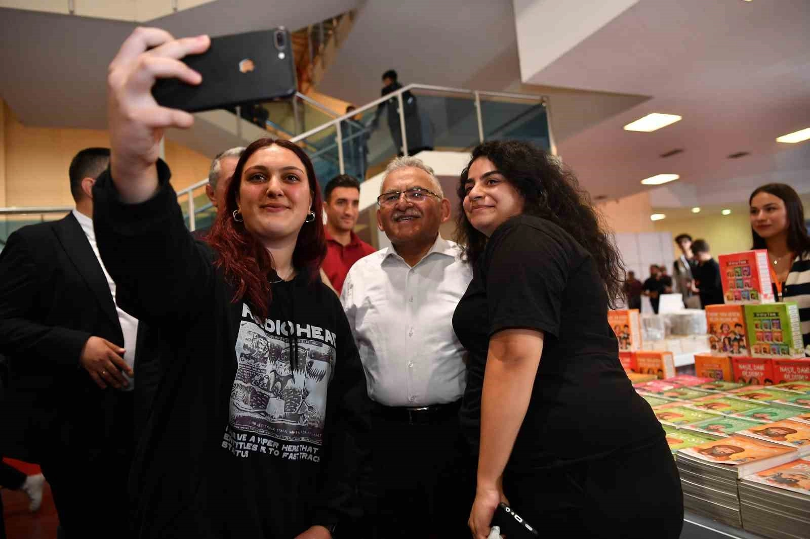 Kayseri Büyükşehir Belediye Başkanı Dr. Memduh Büyükkılıç; 7’nci Kayseri Kitap Fuarı’nın ilk gününde kitapseverlerle bir araya geldi. Fuar alanında yayınevlerinin stantlarını ziyaret eden Başkan Büyükkılıç, yayınevi temsilcileri ve fuarda alışveriş yapan kitapseverlerle sohbet etti.Büyükşehir Belediyesi tarafından düzenlenen ve ziyaretçi rekorları kıran Kayseri Kitap Fuarı’nın 7’ncisi 11 Ekim Cuma günü kapılarını açarken, 412 yayınevi, 513 yazar ile 3 milyonu aşkın kitabı Kayserililerle buluşturacak fuar ilk saatlerinden itibaren ziyaretçilerin yoğun ilgisiyle karşılaşıyor. Rekorlara imza atan kitap fuarlarının mimarı Büyükşehir Belediye Başkanı Dr. Memduh Büyükkılıç da 7’nci Kayseri Kitap Fuarı’nı hem yakından takip ediyor hem de bu dev fuarın heyecanını kitapseverlerle birlikte yaşıyor. Bu çerçevede, Başkan Büyükkılıç, 7’nci Kayseri Kitap Fuarı’nın ilk saatlerinde fuar alanını ziyaret etti. Büyükkılıç’a, ziyaretinde Büyükşehir Belediyesi Genel Sekreter Yardımcısı Mücahid Soyak, Kayseri İl Milli Eğitim Müdürü Coşkun Esen, Melikgazi İlçe Milli Eğitim Müdürü Hacı Kaya, daire başkanları eşlik etti. Fuar alanında yayınevlerinin stantlarını tek tek ziyaret eden Başkan Büyükkılıç, yayınevlerinin temsilcileri ve alışveriş yapan kitapseverlerle sohbet etti. Büyükkılıç, fuar alanında oluşturulan Kayseri Kitap Fuarı Hatırası sınıfındaki sıralara oturdu ve burada rekorlar kıran fuara dair açıklamalarda bulundu. Başkan Büyükkılıç, Kayseri’nin okuyan ve okutan bir şehir olduğuna vurgu yaparak; "20 binin üzerinde ortaöğrenim öğrencisi olan, 75 bin yükseköğrenim öğrencisi olan, 5 tane üniversitesi olan, bin civarında okul, 23 bin civarında öğretmen olan bir şehirden söz ediyoruz. Okuyan ve okutan şehir" dedi. Çocuklar ve gençleri kitaplarla tanıştırıp kitap kurdu yapmanın önemine değinen Büyükkılıç; "Başarıdan başarıya imza atıyor çocuklarımız. Onları desteklemek, yüreklendirmek, onları kitaplarla tanıştırıp kitap kurdu yapmak bizim için önemli. Kayseri Büyükşehir Belediyesi bünyesinde 15 tane kütüphanemiz söz konusu. Kitaplarla hem şehrimizi buluştururken fuar yoluyla da milyonlarca insanın buraya gelmesine fırsat sağlıyoruz” ” şeklinde konuştu.Kitap fuarını dolduran öğrenciler başta olmak üzere vatandaşlara hediye çeki dağıtan Büyükkılıç, kendisiyle fotoğraf çektirmek isteyen gençleri de kırmadı. Başkan Büyükkılıç, yayınevlerinin temsilcilerine de hoş geldiniz diyerek, iyi fuarlar diledi. Kitap Fuarı ziyaretçileri de düzenlenen fuar ile sunulan imkânlardan dolayı Büyükkılıç’a teşekkür ettiler.