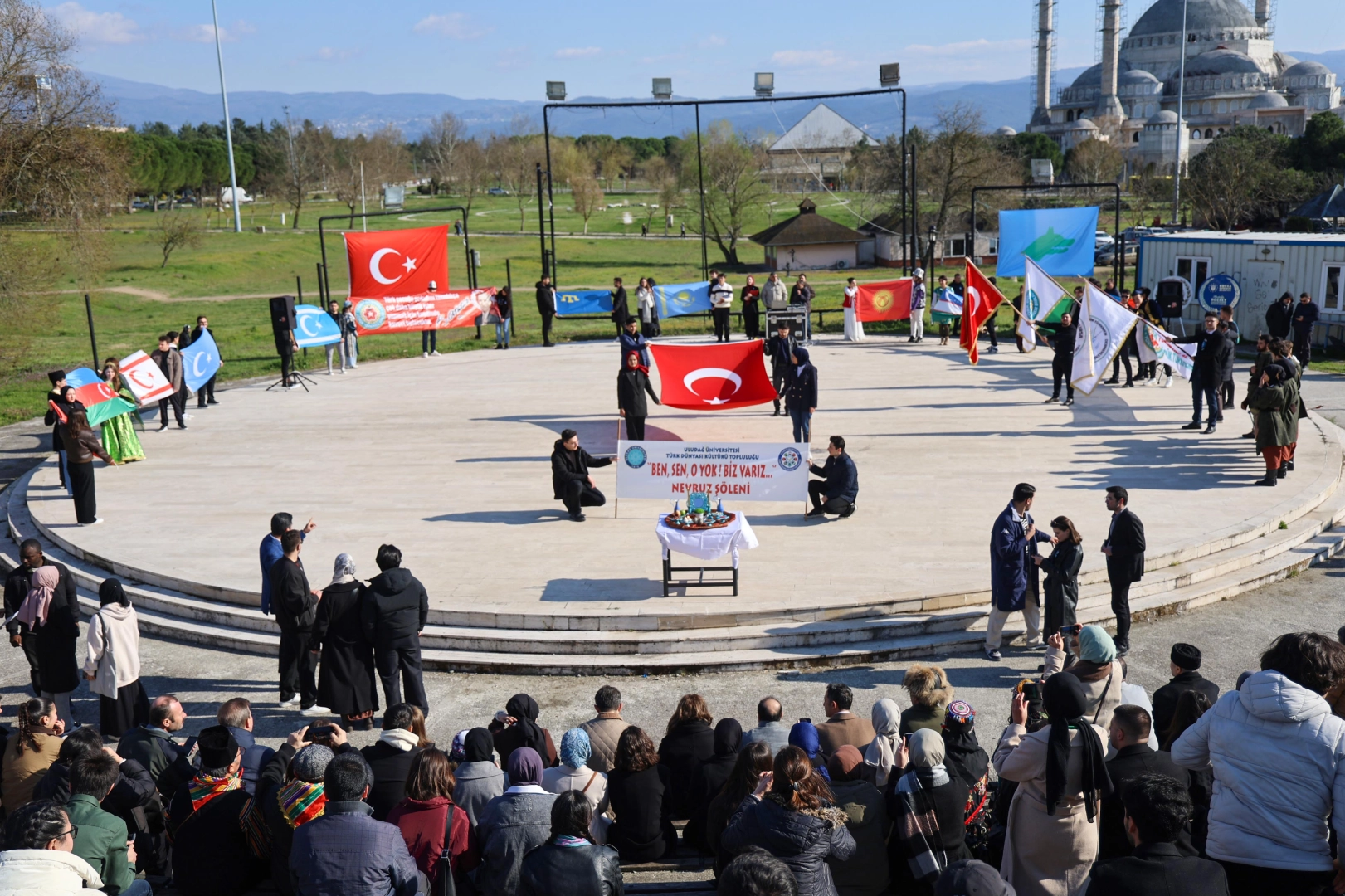 Programda konuşan Rektör Prof. Dr. Ferudun Yılmaz, “Dünya sisteminin bu denli gerildiği ortamda, evrensel insan hakları etrafında atılan nutukların, bombalar şeklinde Gazze'deki insanların üzerine yağdığını görüyoruz. Biz Türklerin devlet geleneğinin dünya siyaset felsefesine ya da siyaset pratiğine hediye ettiği önemli bir kavramımız var, o da adalet. Bunu güçlü olduğumuzda da zayıf düştüğümüzde de politik pratik olarak her zaman icra etmişiz ve bundan da hiç taviz vermemişizdir. O yüzden dünyanın ahvalinin kendi içerisinde bir selamet, bir barış bulması söz konusu olacaksa, bu barışın ve selametin bizim politik tecrübemizle mümkün olabileceğine inanıyoruz. İnşallah devletimiz ve devletlerimiz güçlendikçe insanlığın selameti de güçlenecek. Bin yıllara dayanan yürüyüşümüzün, bir kez daha tekrarladığımız yeni günümüzün gelecek ufkumuza doğru da yeni umutlar anlamına gelmesini temenni ediyor, Nevruz Bayramımızı kutluyorum.” ifadelerini kullandı.