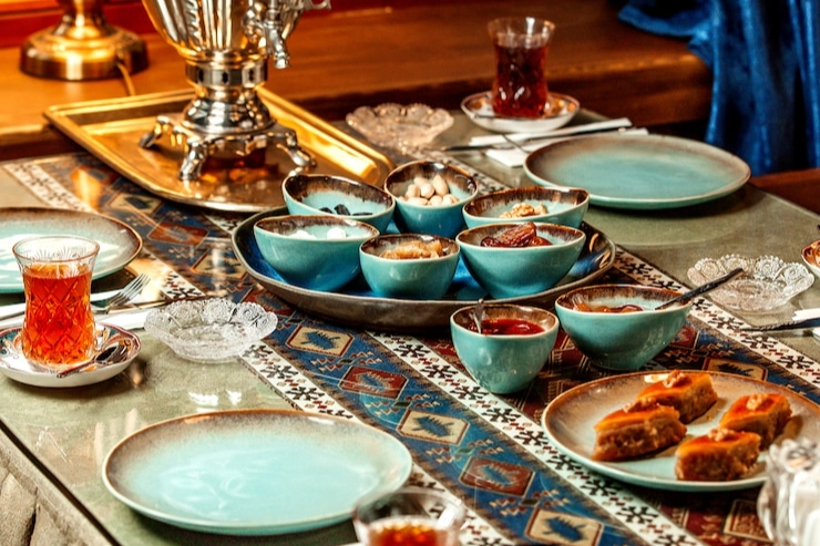 “Bayrama özgü yapılan börek gibi hamur işlerini kahvaltıda, tatlı, sarma gibi yiyecekleri ara öğünde tüketerek enerji alımını akşama doğru azaltabilirsiniz” diyen Uzm. Dyt. Seher Dallı Şen, “Aldığınız kaloriyi dengelemek için akşam yemeğinden sonra sindirimi başlatan yiyecek ve içecekler tüketmeyin. Şekersiz açık çay, kahve, bitki çayları, maden suyu tercih edebilirsiniz. Misafirliğe gitmeden önce tüketeceğiniz yiyeceklerin çeşit ve miktarını belirleyerek, planladığınız miktarları aşmama çalışın. Yapılan ikramların hepsini tüketmeyin, hafif olanlarını tercih edin. Tatlı olarak güllaç gibi sütlü ve meyveli hafif tatlıları tercih etmek daha avantajlıdır. Çikolata, şeker gibi ikramlıkları tüketmeyip, çantanıza koyun. Tatlı tükettiğinizde o gün için dengelemek için meyve tüketmeyip, ekmeği azaltın. Asitli ve şekerli içeceklerden uzak durun” ifadelerinde bulundu.