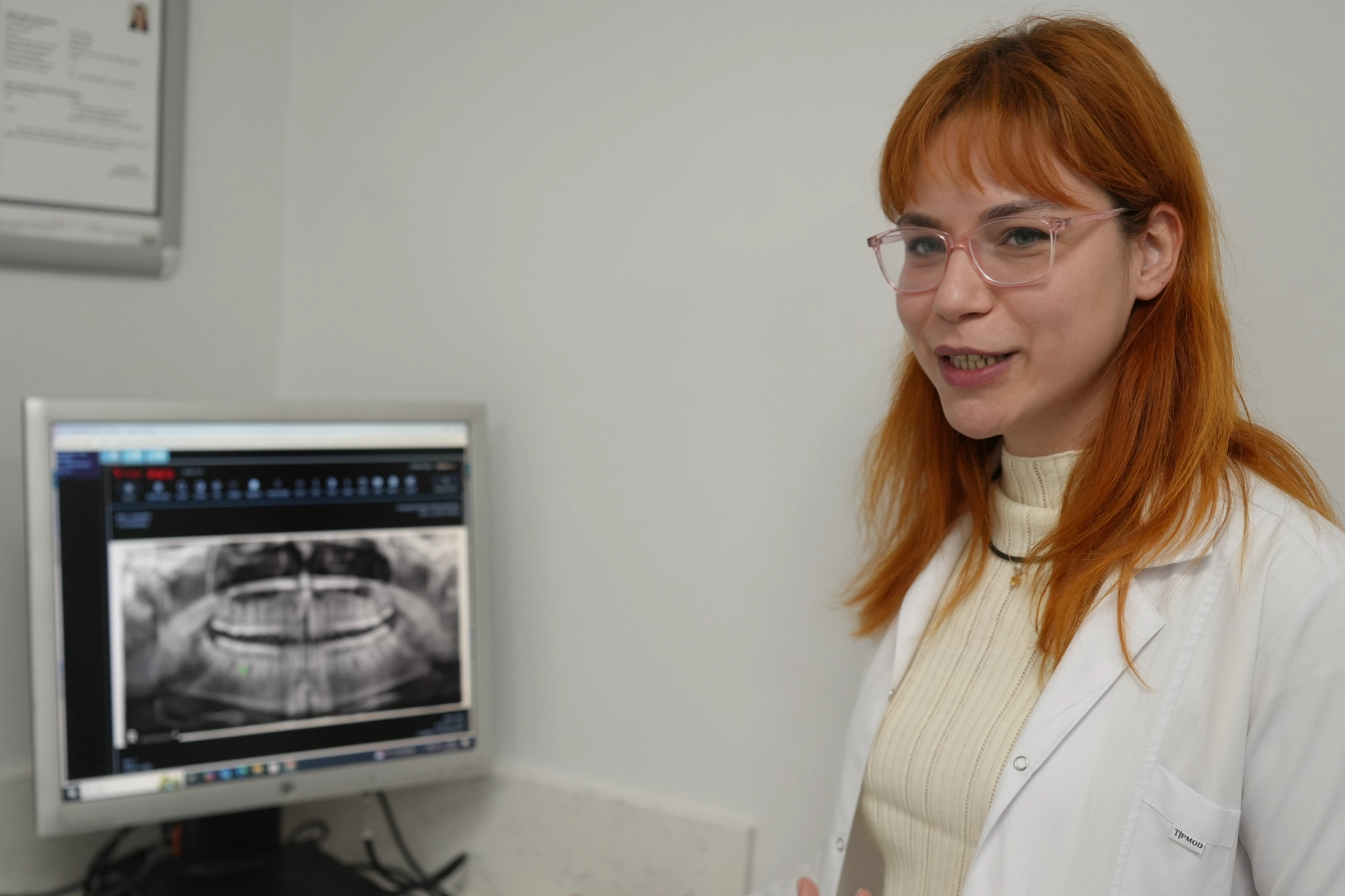 KOSTÜ Diş Hekimliği Fakültesi'nde Ağız, Diş, Çene Radyolojisi Ana Bilim Dalı'nda görevli Dr. Öğretim Üyesi Melisa Öçbe, "Craniocatch" isimli yapay zeka programının detaylarını anlattı. Bu programı yaklaşık bir aydır kullandıklarına dikkat çeken Öçbe, "100'den fazla hastayı yapay zeka ile muayene ettik. Hasta ilk muayeneye geldiğinde, rutin görüntüleme yöntemi olan 2 boyutlu panoramik röntgen çekiliyor. Craniocatch, bu panoramik radyografiyi analiz ederek hem anatomik noktaları belirliyor hem de çürük, periodontal hastalıklar gibi mevcut rahatsızlıkların tanısını koyuyor. Bununla da kalmayıp hasta için bu mevcut hastalıkların tedavi planını oluşturuyor. 'Bu diş çürük, buna dolgu yapılması lazım, kemik kaybı var, diş boşluğu var, implant yapılması gerekiyor' gibi bize detaylı tedavi yöntemi sunuyor" dedi.
