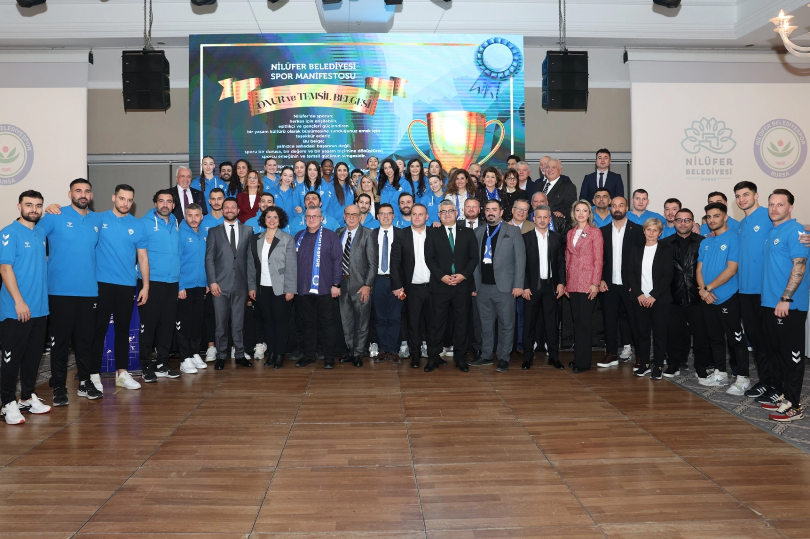 Nilüfer Belediyesi’nin, kentin sporla kurduğu bağı güçlendirmek ve bu alandaki vizyonunu kurumsal bir çerçeveye oturtmak amacıyla hazırladığı “Nilüfer Spor Manifestosu”, Nilüfer Belediye Başkanı Şadi Özdemir, Büyükşehir Belediyesi Başkan Vekili Baran Güneş, Mudanya Belediye Başkanı Deniz Dalgıç, Türkiye Voleybol Federasyonu Yönetim Kurulu Üyesi Ersin Yılmaz, Nilüfer Belediye Başkan Yardımcıları, meclis üyeleri, Nilüfer Belediyespor Kulübü Başkanı Muharrem Or ile iş dünyası temsilcileri, sporcular ve kulüp yöneticilerinin katılımıyla gerçekleştirilen özel bir organizasyonla paylaşıldı.