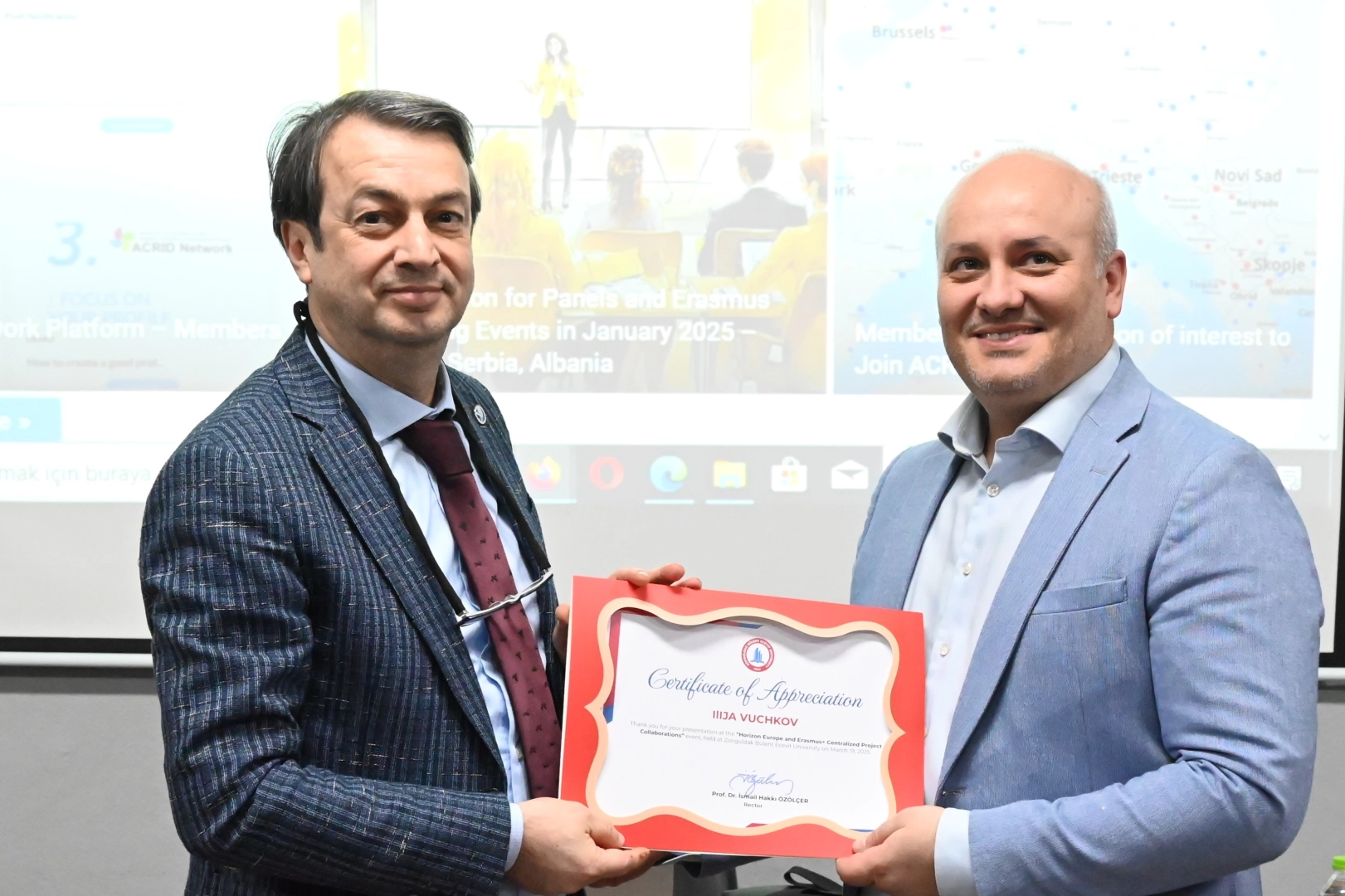 Erasmus+ ve Horizon Projeleri’ne yönelik gerçekleştirilen ikinci etkileşimli oturumda, Ilija Vuckov potansiyel ortakların belirlenmesi ve Erasmus+ ile Horizon Europe fonlarına yönelik başarılı proje başvurularının hazırlanması konularında rehberlik sundu. Proje başvurularında dikkat edilmesi gereken hususlar ve potansiyel ortaklıkların belirlenmesi noktalarında yapılabilecekleri detaylı bir şekilde aktaran Vuckov, ilgili başlıklarda gerçekleştirilebilecek projelerin de öneminden kapsamlı bir şekilde bahsetti.