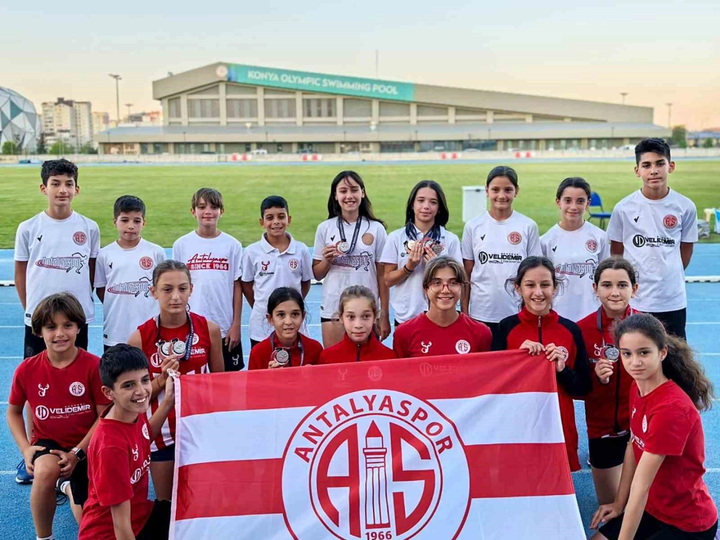 Türkiye Atletizm Federasyonu tarafından düzenlenen U14 Türkiye Şampiyonası 27-28 Temmuz 2024 tarihlerinde Konya’da gerçekleşti. Şampiyonaya 2011,2012 ve 2013 doğumlu atletlerle katılan Antalyaspor Atletizm Takımı, Konya’da 10 madalya toplayarak önemli bir başarıya daha imza attı.Konya Atletizm Pisti’nde 48 ilden toplam 934 atletin katıldığı organizasyonda Antalyaspor’un formda ismi Alya Ercan gösterdiği peformansla dikkatleri üzerine topladı. 2011 doğumlu olan ve 13 Yaş klasmanında yarışan Alya Ercan, 200 metre yarışını 27.23 ile birinci olarak tamamlayarak altın madalya kazandı. Ercan, 13 yaş Antalya karması içerisinde yarıştığı 4x200 bayrak yarışında da ikinci birinciliğini elde ederek Konya’da ikinci altın madalyasını kazandı. Öte yandan yine 13 yaş Antalya karması ile çıktığı 5x80 bayrak yarışında ikinci olan Alya Ercan, katıldığı 60 metre yarışında ise 8.13’lük derece elde ederek 2 kez de ikinci oldu.En iyi derecelerini yaptılarİl karmaları ile bayrak yarışlarına katılan Antalyaspor’un 12 yaş sporcularından Masal Ada Keskin, Emine Ersen ve Sümeyye Tuncer’in yer aldığı 5x80 Antalya takımı 56.91’lik derecesi ile ikincilik kazanırken; aynı yaş grubunda 4x200 Antalya takımında yer alan Zeynep Şentürk, Mira Aykota ve Sümeyye Tuncer üçlüsü de 1:56.39 koşarak yine ikincilik kazanan kırmızı-beyazlı sporcular oldular. Bayrak yarışlarında elde ettikleri madalyalarla yükselen form grafiklerini ortaya koyan Antalyasporlu Sümeyye Tuncer ve Mira Aykota ikilisi yer aldıkları 200 metre müsabakasında kendi en iyi derecelerini yaparak sırasıyla altıncı ve onuncu oldu.Üçünçülük şansını saliselerle kaçırdıEngelli Koşuda 200 metreyi 29.12 ile tamamlayan Bartu Çetin, üçüncülük şansını saliselerle kaçırdı. Çetin, dördüncü olduğu yarışta Antalyaspor’un erkek sporcularının yer aldığı Antalya il karması ekipleri 5x80 ve 4x200 yarışlarında birer beşincilik elde ettiler. Uzun Atlama branşında mücadele eden 2012 doğumlu Antalyasporlu atlet Zeynep Şentürk ve 2013 doğumlu takım arkadaşı Elif Eylül Ceylan’ın kendi yaş kategorilerinde on ikinci ve on dokuzuncu oldukları şampiyonada Antalyaspor’un genç atletleri elde ettikleri derecelerle potansiyellerini bir kez daha göstermiş oldular.