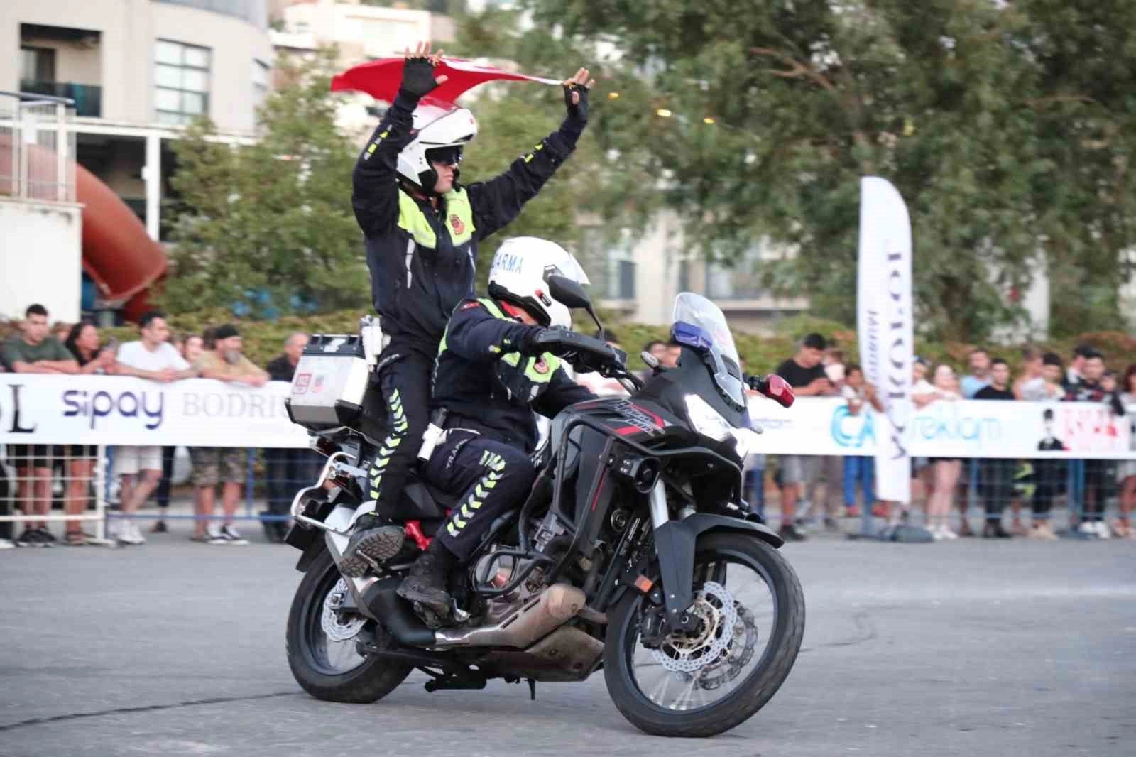 Motosiklet tutkunlarını bir araya getiren ’Uluslararası Bodrum Motofest’ nefes kesen gösteriler ve eğlenceli anların yaşandığı konserle kapılarını açtı. Birkan Polat’ın adrenalin dolu gösterisi büyük beğeni topladı.Muğla Büyükşehir Belediyesi, Bodrum Kaymakamlığı ve Bodrum Belediyesi’nin destekleriyle yapılan Uluslararası Bodrum MotoFest nefes kesen gösteriler ve eğlenceli dakikalarla başladı. Yüzlerce motosikletlinin katılımıyla Barış Meydanı’ndan Gümbet Dolgu Alanı’na kadar kortej yapıldı. Kortej sırasında bölgedeki yerli ve yabancı turistler o anları fotoğraf çekerek ölümsüzleştirdi. Dolgu alanına Bodrum İlçe Emniyet Müdürlüğü ve Bodrum İlçe Jandarma Komutanlığına bağlı motosiklet ekipleri Türk bayrağı açarak giriş yaptı. Alanda toplanan motosiklet tutkunları şovlarıyla, festivali ziyaret edenlere büyüleyici gösteri yaptı. Uluslararası Bodrum Motofest Komite Başkanı Selim Turan, Bodrum Kaymakamı Mustafa Çit, Bodrum Belediye Başkan Vekili Kanat Özsert, Bodrum İlçe Milli Eğitim Müdürü Aslan Korkmaz, Bodrum Gazeteciler Cemiyeti Başkanı Eren Ayhan ve beraberindeki heyete stantları gezdirerek festival hakkında bilgi verdi. Daha sonra protokol heyeti jandarmanın eğitim ve simülasyon alanını ziyaret etti ve çalışmaları yerinde takip etti.Birkan Polat’ın gösterisi nefes kestiFestival kapsamında motosiklet akrobasi şampiyonu Birkan Polat nefes kesen gösteriye imza attı. Polat, motosikletiyle izleyenlere adrenalin dolu dakikalar yaşattı. Gösteri sırasında Polat, Bodrum Kaymakamı Mustafa Çit’in elinde bulunan Türk bayağını alarak motosikletin üzerine çıktı. Bodrum İlçe Emniyet Müdürlüğü’nde görevli trafik polisi memuru Gökhan Genç, Polat’ın nefes kesen gösterisine motosikletiyle eşlik etti. Yüzlerce yerli ve yabancı turist Polat’ın gösterisini fotoğraf ve video çekerek ölümsüzleştirdi.Destek verenlere plaket takdim edildiFestivalin gerçekleşmesinde emek veren Bodrum Kaymakamı Mustafa Çit, Bodrum Belediye Başkan Vekili Kanat Özsert, Muğla Büyükşehir Belediyesi Bodrum Koordinasyon Şube Müdürü İzzet Mert Kallem, Bodrum İlçe Milli Eğitim Müdürü Aslan Korkmaz, Bodrum İlçe Emniyet Müdürü Mehmet Darendeli ve Bodrum Gazeteciler Cemiyeti Başkanı Eren Ayhan başta olmak üzere sponsorlara motosiklet figürlü plaket takdim edildi.Sevilen şarkılarını seslendiren ünlü grup Necati ve Saykolar hem festivale katılan motosiklet tutkunlarına hem de bölgedeki yerli ve yabancı turistlere eğlenceli anlar yaşattı.Motosiklet tutkunları pist istiyorFestivalin açılışında konuşan ve motosiklet tutkunlarının pist istediğini vurgulayan Organizasyon Komite Başkanı Selim Turan, "Organizasyonu düzenlememizin en büyük sebebi Turgutreis, Ortakent ve Konacık motosiklet grupları yoğun ısrar üzerine seçim döneminde beni çağırdılar. Bana ’Bizim yollarda yaptığımız akrobasi görüntülerinin sürekli haberlerini yapıyorlar, biz pist istiyoruz’ dediler. Muğla Büyükşehir Belediye Başkanımız Ahmet Aras’a seslenmek istiyorum, başkanım gençler sizlerden güvenli sürüş için pist istiyorlar. Lütfen motosiklet tutkunları için Bodrum’a pist yaptırın. Bu organizasyonun gerçekleşmesinde emeği geçen Bodrum Kaymakamımız, Muğla Büyükşehir Belediye Başkanımız, Bodrum Belediye Başkanımız başta olmak üzere meslektaşlarım basın emekçilerine ve sponsorlarımıza çok teşekkür ederim" dedi.Eğitimler motosiklet sürücülerine katkı sağlayacakFestival kapsamında yapılan eğitimlerin önemine değinen Bodrum Kaymakamı Mustafa Çit, "3 gün boyunca bu alanda çok güzel gösteriler olacak. Bodrumlular spora doyacak. Hem eğleneceğiz hem eğitim alacağız hem de motosiklet ürünlerini bir arada göreceğiz. Motosiklet sayıları son yıllarda arttı bu noktada burada yapılacak eğitimlerle kardeşlerimizin bir şeyler kazanmasını arzu ediyoruz" diye konuştu.Motosiklet pisti için ellerinden gelenin yapılacağını söyleyen Muğla Büyükşehir Belediyesi Bodrum Koordinasyon Şube Müdürü İzzet Mert Kallem, ise, "Bu organizasyonun Muğla ve Bodrum’a kazandırıldığı için organizasyon komite başkanı Selim Turan’a teşekkür ederim. Pist konusunda elimizden gelen her şeyi yapacağız" şeklinde konuştu.Arabaların trafikte motosikletlileri fark etmesi gerektiğini belirten Bodrum Belediyesi Başkan Vekili Kanat Özsert, "Bu organizasyonun Bodrum’da yapılmasından dolayı çok büyük mutluluk duyuyoruz. Bodrum, spor anlamında birçok ilden ileride. Süper Lig’de takımlarımız ve bir sürü branşta sporcu başarılarımız var. Trafikte arabalar bazen bizi fark etmiyor. Ben de motosiklet sürücüsüyüm. Araba sürücüleri lütfen motosikletlilere saygı duyun" ifadelerini kullandı.