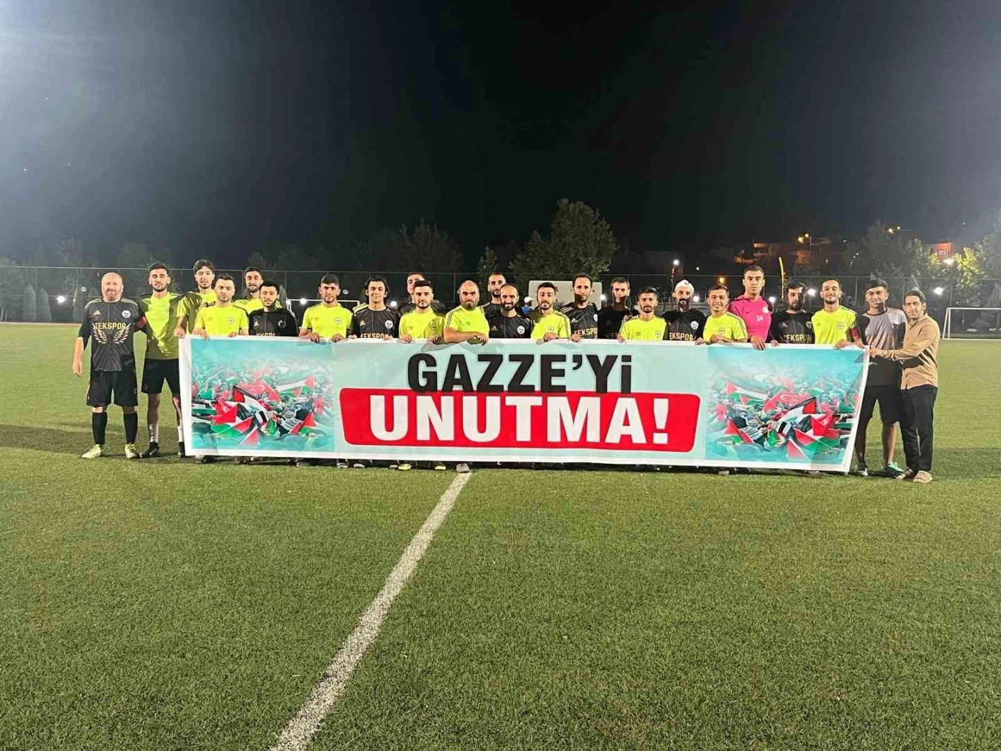 Diyarbakır’ın Çınar Kaymakamlığı tarafından düzenlenen 29 Ekim Cumhuriyet Futbol Turnuvasında sahaya çıkan takımlar ‘Gazze’yi Unutma’ pankartı açarak İsrail’in Filistin’de gerçekleştirdiği soykırıma tepki gösterdi.Diyarbakır’ın Çınar ilçesinde futbol turnuvası düzenlendi. Toplam 9 takımın bulunduğu futbol turnuvasında takımlar, İsrail’in Filistin’de gerçekleştirdiği soykırıma tepki göstermek ve Filistin halkına destek vermek amacıyla ‘Gazze’yi Unutma’ pankartıyla sahaya çıktı.