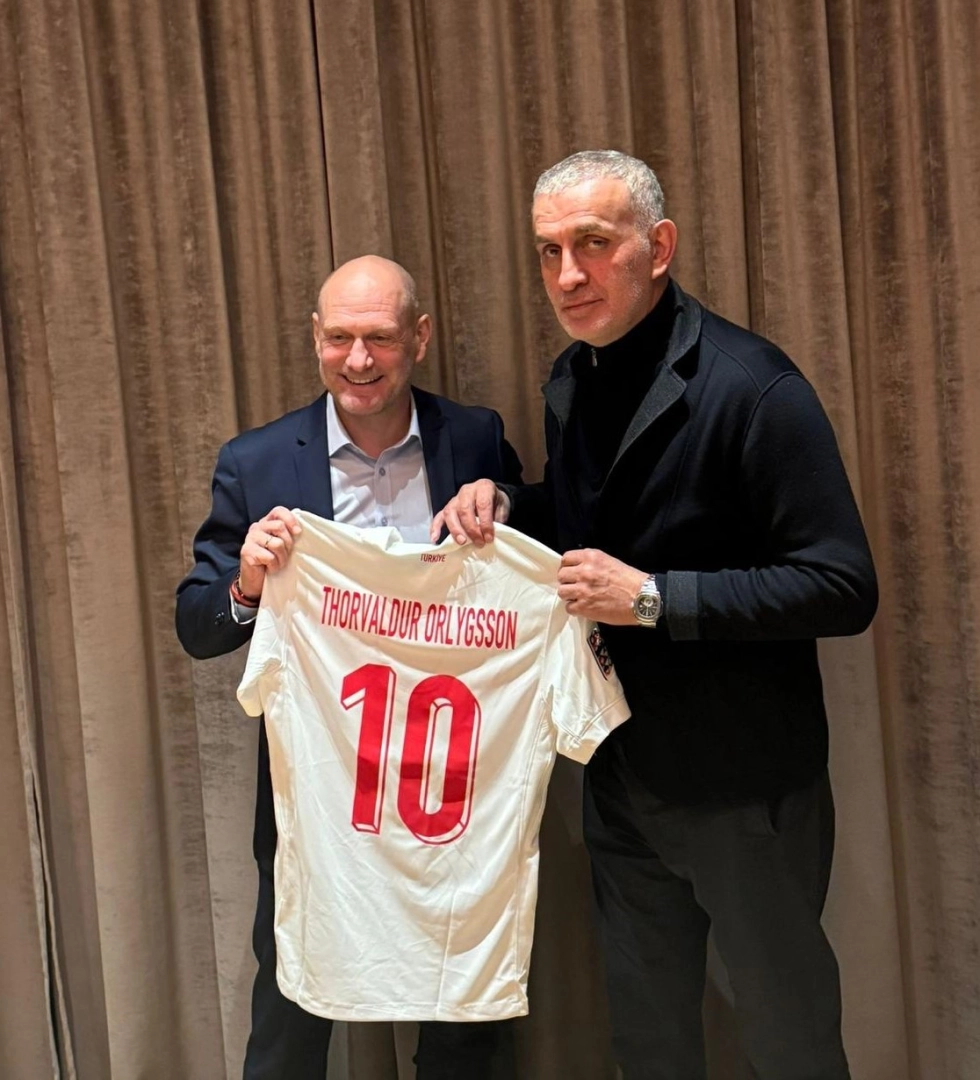 A Milli Futbol Takımı’nın, UEFA Uluslar B Ligi 4. Grup’ta bu akşam İzlanda ile oynayacağı karşılaşma öncesinde resmi yemek organizasyonu gerçekleştirildi.İzlanda’nın başkenti Reykjavik’teki yemek organizasyonuna Türkiye Futbol Federasyonu Başkanı İbrahim Ethem Hacıosmanoğlu, TFF Başkan Vekili, İcra Kurulu Üyesi, Süper Lig’den Sorumlu Yönetim Kurulu Üyesi Mecnun Otyakmaz, Başkan Vekili, İcra Kurulu Üyesi, Dış İlişkiler ve Sağlık İşlerinden Sorumlu Yönetim Kurulu Üyesi Zehra Neşe Kavak, Başkan Vekili, İcra Kurulu Üyesi, Millî Takımlar, FIFA ve UEFA İlişkilerinden Sorumlu Yönetim Kurulu Üyesi Ceyhun Kazancı, Genel Sekreter Abdullah Ayaz, UEFA Delegesi David Findlay, İzlanda Futbol Federasyonu Başkanı orvaldur Örlygsson, İzlanda Futbol Federasyonu Başkan Yardımcısı Helga Helgadottir ile Yönetim Kurulu Üyesi Mni Petursson ve Genel Sekreter Eysteinn Petur Larusson katıldı.Başkan Hacıosmanoğlu, İzlanda Futbol Federasyonu Başkanı Örlygsson ve UEFA Delegesi Findlay’e A Milli Takım forması takdim etti. İki ülke federasyon başkanı ve heyetlerinin, Laugardalsvöllur Stadyumu’nda oynanacak müsabaka için birbirlerine başarılar dilediği yemek, flama ve hediye takdimleri ile sona erdi.