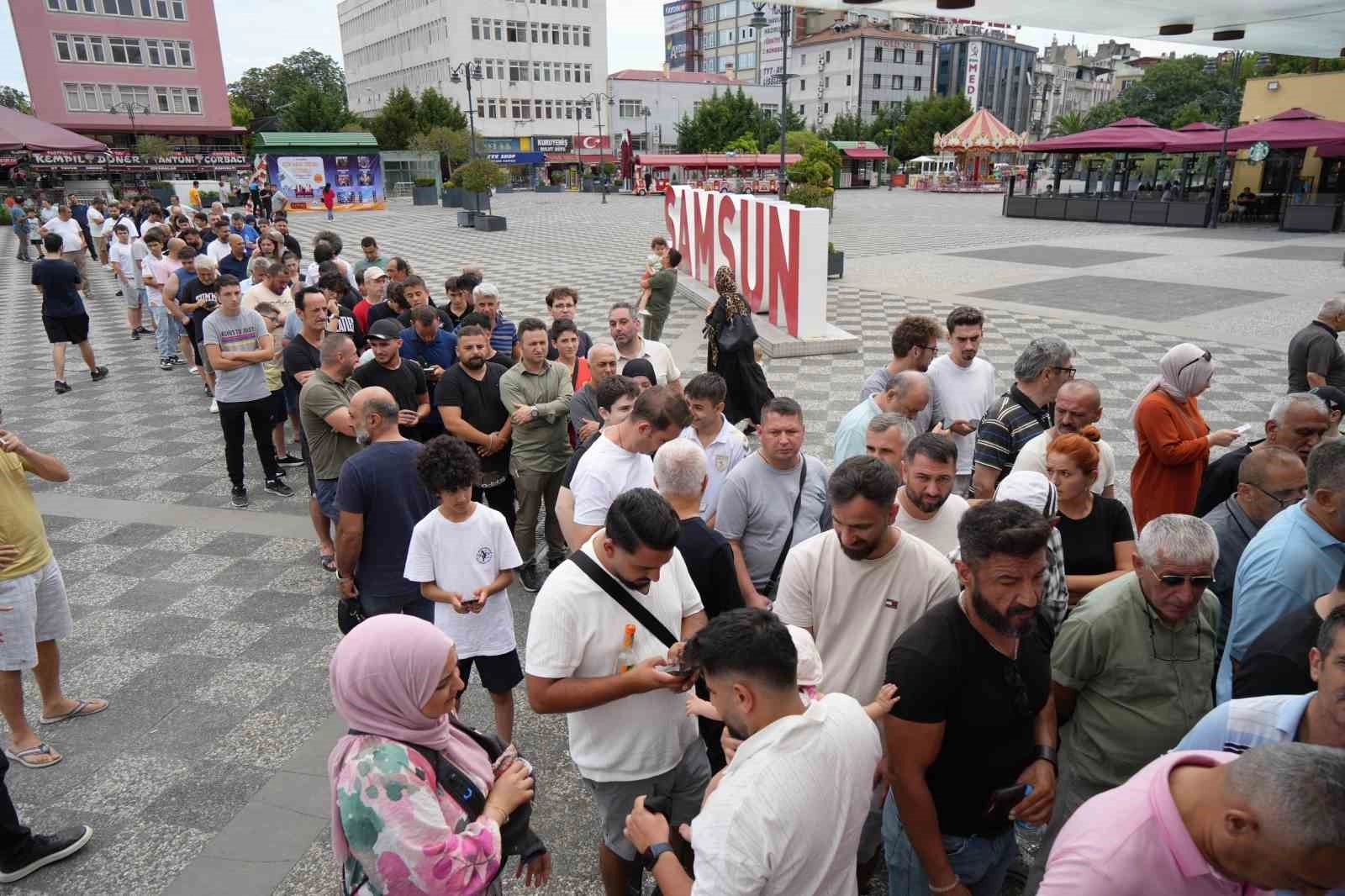 Beşiktaş maçının biletleri, satışa çıkar çıkmaz taraftarlardan yoğun ilgi gördü. Samsunspor ile Beşiktaş, yeni sezonun ilk maçına 11 Ağustos Pazar günü saat 21.45’te 19 Mayıs Stadyumu’nda çıkacak. Karşılamanın biletleri maçtan 5 günce yani bugün saat 11.00’de satışa sunuldu. Bilet satış noktalarında saatler öncesinden yerini alan taraftarlar sezon açılış maçına bilet almak için uzun kuyruk oluşturdular.Teoman Özkalaycı: “Sonuna kadar takımımızı desteklemeye devam edeceğiz”Her şartta Samsunspor’a destek olduklarını ifade eden Samsunspor taraftarı Teoman Özkalaycı, “Sezon başı heyecanı yaşıyoruz. Samsunspor’dan ümitliyiz. Sonuna kadar takımımızı desteklemeye devam edeceğiz. Beşiktaş maçı bileti için sıraya girdik. Biletimizi alıp, maça gitmek istiyoruz. Satışlar saat 11.00’de başladı. Sıra biraz yavaş ilerliyor. Bu sene kombine almayı düşünmüyorum. Beşiktaş maçına kimse 3 puan alırız diye yazmamıştır. Yine de son düdük çalana kadar takımımızdan ümidi kesmiyoruz. Bu sezon kümede kalmak bizim için başarılı olur. Bilet fiyatlarına gelirsek, bence fiyat ortalamanın üstünde. Biraz daha indirim olmalı. 3-4 hafta geçtikten sonra da bilet fiyatlarının düşeceğini düşünüyorum” dedi.Seyfi Yılmaz: “Taraftar bilet fiyatlarından memnun değil”Bilet fiyatlarının pahalı olduğunu değerlendiren, 1,5 saattir sıra bekleyen taraftar Seyfi Yılmaz, “İnşallah bu sezon ilk 10’da ligi tamamlarız. Bu sene taraftar bilet fiyatlarından memnun değil. Dün 750 TL olan maraton bileti bin TL olmuş. Ev sahibi biletleri bu rakamlardayken deplasman tribününün 520 TL olmasını doğru bulmuyorum. Kombine almayacağım, bilet alacağım. 1,5 saattir sıra bekliyorum, 1 saat daha beklerim diye düşünüyorum. Beşiktaş maçından da ümitliyim. İyi gün değil kötü gün taraftarıyız. Yönetimin de taraftarın önünü açması gerektiğini belirtiyorum” diye konuştu.Taha Özkan: “Karadeniz’in en büyük taraftarı olduğumuzu geçen sene gösterdik”Bu sezon da büyük taraftarlık örneği göstereceklerini, bunun için de ilk gösterimin Beşiktaş maçı olacağını vurgulayan taraftar Taha Özkan, “Yeni sezon için çok heyecanlıyız. Taraftarımız yine bilet sırasında. Karadeniz’in en büyük taraftarı olduğumuzu geçen sene gösterdik. Bu sene de Türkiye’nin en büyüğü olmak istiyoruz. Transfer yasağımız olmasına rağmen umutluyuz. Çünkü taraftarımız böyle olduğu sürece takımımıza güveniyoruz. Beşiktaş, Süper Kupa’da iyi bir iş çıkardı ama Samsun deplasmanı geçen sene tüm takımlara zor anlar yaşattı. Bu maçı da kazanacağımıza inanıyoruz. Sırada da maç bileti almak için bekliyorum. 40 dakikadır bekliyorum, 1 saat sonraya sıra gelmesini umuyorum ama takımımız için beklemeye değer” şeklinde konuştu.Beşiktaş maçının zor geçeceğini belirten taraftar Ecrin Fırat ise “Beşiktaş maçı zor bir maç olacak. İyi bir başlangıç yapmak istiyoruz. Tek maçlık bilet almak için sıradayım. Fiyatlar biraz yüksek. İlk maç için zor bir rakibimiz olsa da ümitliyim. Sıraya yeni girdim. Bilet alana kadar bekleyeceğim” ifadelerini kullandı.Bilet fiyatları şöyle:VIP: 3 bin TL, A batı alt: 3 bin TL, batı alt-üst1: 2 bin TL, batı alt-üst 2: bin 250 TL, doğu alt-üst: bin TL, kale arkaları: 400 TL ve misafir tribünü: 520 TL.Taraftarlar maç biletlerine ilk dakikalardan itibaren yoğun ilgi gösterdi.