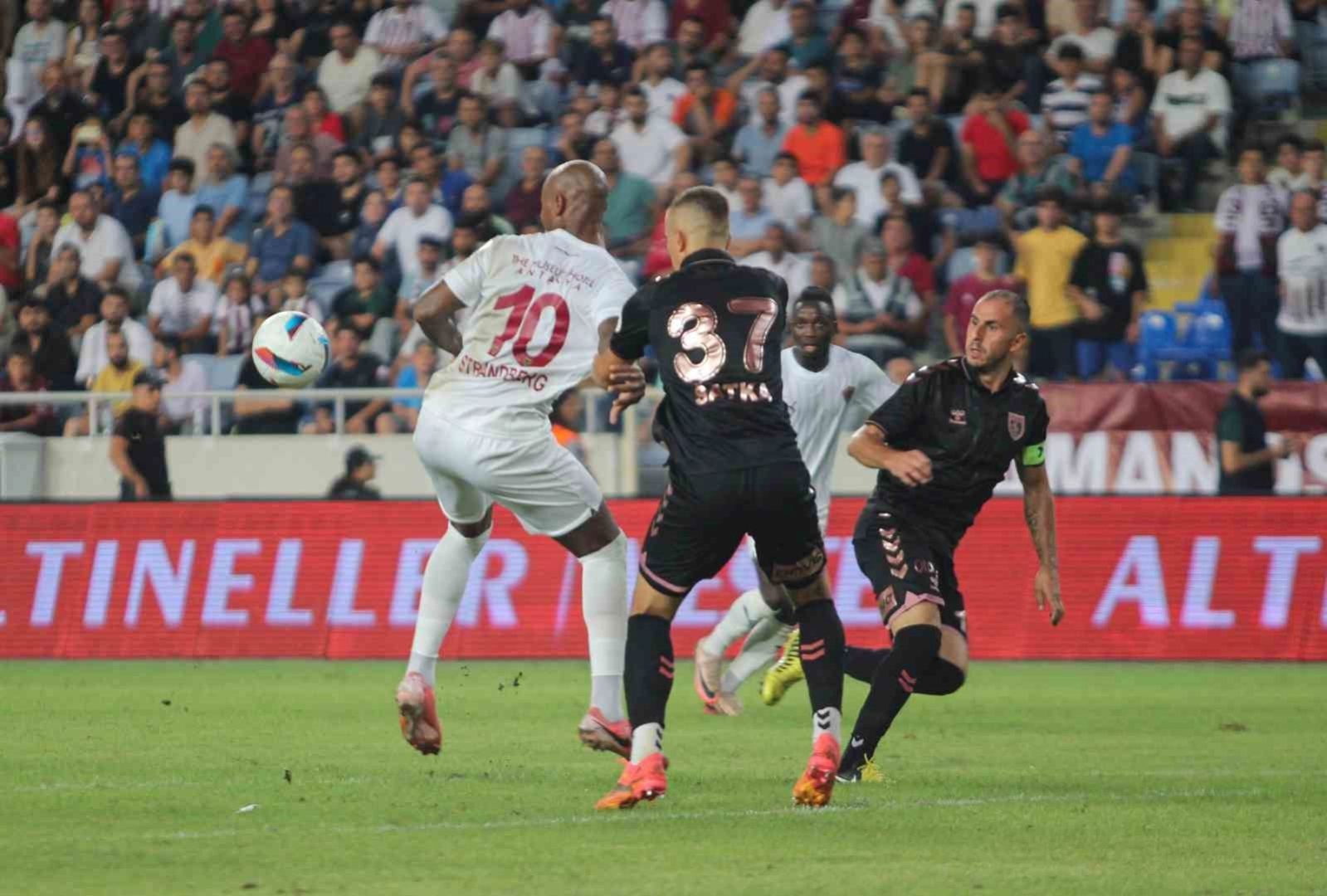 Trendyol Süper Lig’in 4. haftasında Samsunspor, Mersin Stadyumu’nda karşılaştığı Hatayspor’u 3-0 mağlup etti.Maçtan dakikalar (İkinci yarı)51. dakikada sol kanattan ceza sahasına sokulan Muja’nın ortasında Moundilmadji topu kafayla ağlara gönderdi. 2-054. dakikada Moundilmadji’nin pasında Ntcham’ın yerden vuruşunda top kaleci Erce’de kaldı.57. dakikada Van Drongelen’in ceza alanında oluşan karambolde uzaklaştırmaya çalıştığı topla buluşan Okoronkwo’nun penaltı noktası üzerinden yaptığı vuruşta meşin yuvarlak dışarıya gitti.66. dakikada Strandberg’in pasında Joelson Fernandes’in sol çaprazdan vuruşunu kaleci Okan kornere çeldi.73. dakikada Muja’nın şutunda topun Burak Yılmaz’ın eline çarpması üzerine Cihan Aydın beyaz noktayı gösterdi.75. dakikada Ntcham’ın penaltı vuruşunda kaleci Erce’den dönen topu Ntcham tamamladı. 3-0Hakemler: Cihan Aydın, Mehmet Salih Mazlum, Emrah ÜnalHatayspor: Erce Kardeşler, Cemali Sertel, Burak Yılmaz, Cengiz Demir, Kamil Ahmet Çörekçi, Hodzic (Görkem Sağlam dk. 46), Diack, Abdulkadir Parmak (Okoronkwo dk. 55), Bamgboye (Rivas dk. 46), Joelson Fernandes (Rui Pedro dk. 74), StrandbergYedekler: Bekaj, Demir Sarıcalı, Selimcan Temel, Kerim Alıcı, Oğuzhan MaturTeknik Direktör: Özhan PulatSamsunspor: Okan Kocuk, Bola, Van Drongelen, Satka, Zeki Yavru (Dimata dk. 76), Ait Benasser (Celil Yüksel dk. 46), Holse, Ntcham (Soner Gönül dk. 84), Muja (Soner Aydoğdu dk. 84), Schindler, Moundilmadji (Laura dk. 90)Yedekler: Halil Yeral, Muhammet Ali Özbaskıcı, Haluk Mustafa Tan, Bedirhan Çetin, Ercan KaraTeknik Direktör: Thomas ReisGoller: Muja (dk.37), Moundilmadji (dk.51), Ntcham (dk.75) (Samsunspor)Sarı kartlar: Ait Benasser, Bola (Samsunspor)