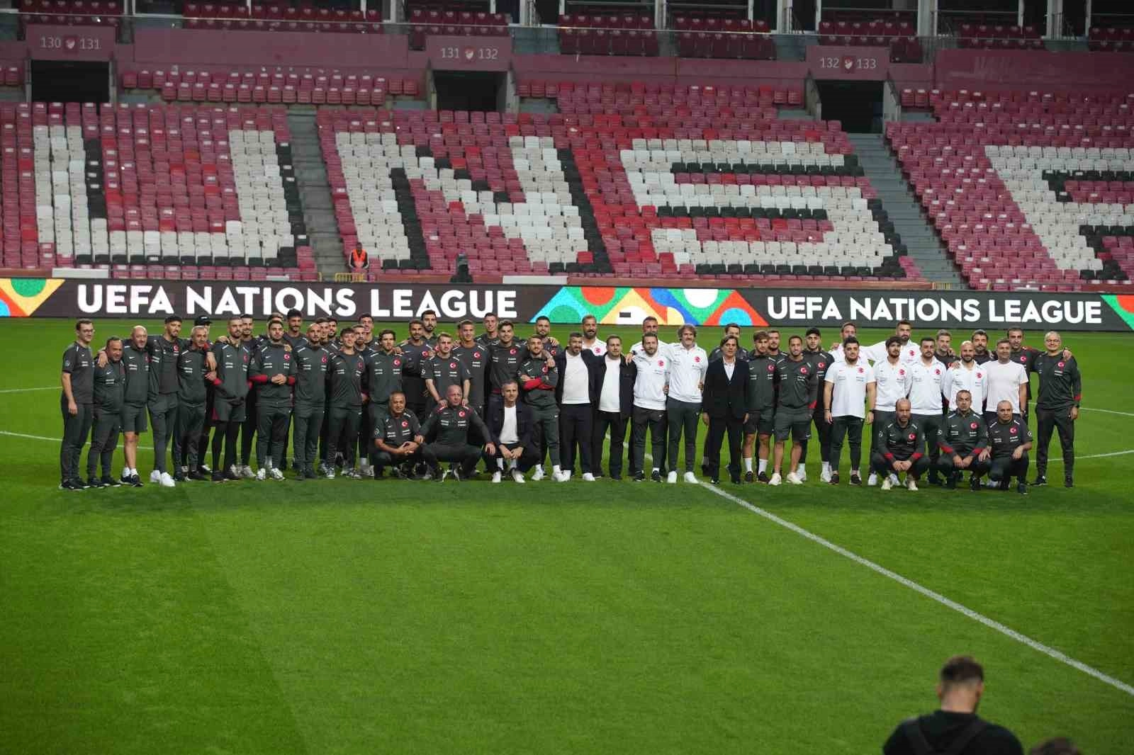 SAMSUN (İHA) – UEFA Uluslar B Ligi 4. Grup’taki 3. maçı için Samsun’da bulunan Türkiye ve Karadağ milli takımları 19 Mayıs Stadyumu’nda incelemelerde bulundu.Türkiye ve Karadağ, UEFA Uluslar B Ligi 4. Grup’taki 3. maçında yarın Samsun’da 19 Mayıs Stadyumu’nda birbirlerine rakip olacaklar. İstanbul’da antrenman yaptıktan sonra Samsun’a gelen Türkiye A Milli Futbol Takımı, stadyuma gelerek sahayı inceledi. Arda Güler, Kaan Ayhan, Kerem Aktürkoğlu, Orkun Kökçü gibi yıldız isimler saha zemininde incelemelerde bulunurken, kaleci Altay Bayındır da kaleleri kontrol etti.Karadağ Milli Takımı da Türkiye’den sonra 19 Mayıs Stadyumuna geldi. Karadağ kafilesinde 19.30 basın toplantılarının ardından yapılan antrenmanda Teknik Direktör Robert Prosinecki, oyuncularına son taktiklerini verdi.Türkiye ve Karadağ grubun 3. maçında 19 Mayıs Stadyumu’nda sat 21.45’te kozlarını paylaşacaklar.