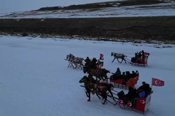 Doğu Anadolu'nun en büyük ikinci gölü olan ve yüzeyi tamamen donan Çıldır Gölü'nde buz üzerinde atlı kızak keyfi sürüyor. 124 bin metrekarelik alanıyla Doğu Anadolu'nun ikinci büyük gölü olan, Ardahan ile Kars sınırlarında yer alan Çıldır Gölü, yerli ve yabancı turistlerin ilk uğrak yeri oluyor. Misafirler, Çıldır Gölü'nde buz üzerinde atlı kızak seferleri yapıyor. Buz üzerinde otomobiliyle drift atan vatandaşlar gönüllerince eğlenme imkanı buluyor.