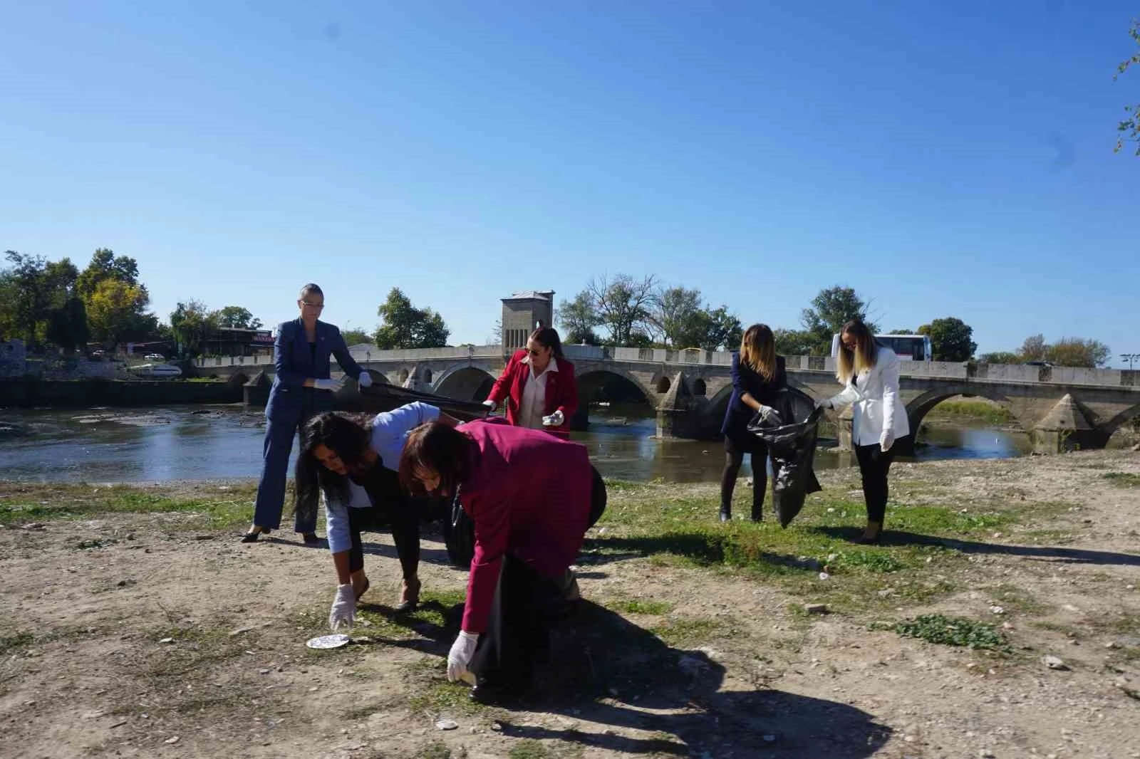Edirne’de temiz bir çevre için el ele veren kadın muhtarlar, en özel günlerinde en güzel kıyafetleriyle çöp toplama etkinliği gerçekleştirdi.Edirne’de 19 Ekim Muhtarlar Günü dolayısıyla düzenlenen tören ve kutlamalar sonrası örnek bir davranış sergileyen kadın muhtarlar, temiz bir çevre için kolları sıvadı. Göreve geldikleri günden bu yana mahallerini güzelleştirmek için çabalayan kadın muhtarlar, bu kez temiz bir çevre için harekete geçti.Sık sık kirlilikle gündeme gelen Tunca Nehri çevresinde bir araya gelen kadın muhtarlar, takım elbiseleri ve topuklu ayakkabıları ile temizlik yaparak farkındalık oluşturdu.Eldivenler takıldı, temiz bir çevre için kollar sıvandıEldivenleri takıp temiz bir çevre için kolları sıvayan kadın muhtarlar, nehir kenarına atılan plastik atıklar, cam şişeler, sigara izmaritleri gibi çevre kirliliğine sebep olan çöpleri poşetlere doldurarak ekiplerin gelmesini bekledi.Bu önemli ve anlamlı günlerine bir anlam daha katmak istediklerini söyleyen Edirne Merkez Cumhuriyet Mahallesi Muhtarı Selma Oluçay, kadın muhtarlar olarak bir farkındalık oluşturmak istediklerini ve Tunca Nehri kenarında temizlik etkinliği düzenlediklerini belirtti.Topuklu ayakkabıları ve takım elbiseleri ile temizlik yaparak dikkat çekmek istediklerini belirten Oluçay, vatandaşlara çevreyi kirletmemeleri konusunda çağrıda bulundu.Temiz çevre için duyarlılık çağrısıBugün kendileri için bayram günü olduğunu ve düzenlenen törenler sonrası farkındalık oluşturmak için çöp toplamaya geldiklerini belirten Yeniimaret Muhtarı Neslihan Dönmez Dürüktaş, temiz bir çevre için vatandaşlara seslenerek duyarlılık çağrısında bulundu.Medrese Alibey Mahallesi Muhtarı Nesrin Günay, kadın muhtarlar olarak bir ilke imza atarak örnek olmak istediklerini söyledi.Atatürk Mahallesi Muhtarı Gülden Akman Yılmaz, topuklu ayakkabı ve takım elbiselerle örnek olmak için çöp toplamaya geldiklerini aktardı.Çevre kirliliğinin önüne geçmek ve bu konuda farkındalık oluşturmak amacıyla bu şekilde bir etkinlik düzenlemek istediklerini söyleyen Kurtuluş Mahallesi Muhtarı Nurcan Uzel, vatandaşlara örnek olmak amacıyla eldivenlerini takıp çevre temizliği yaptıklarını belirtti.