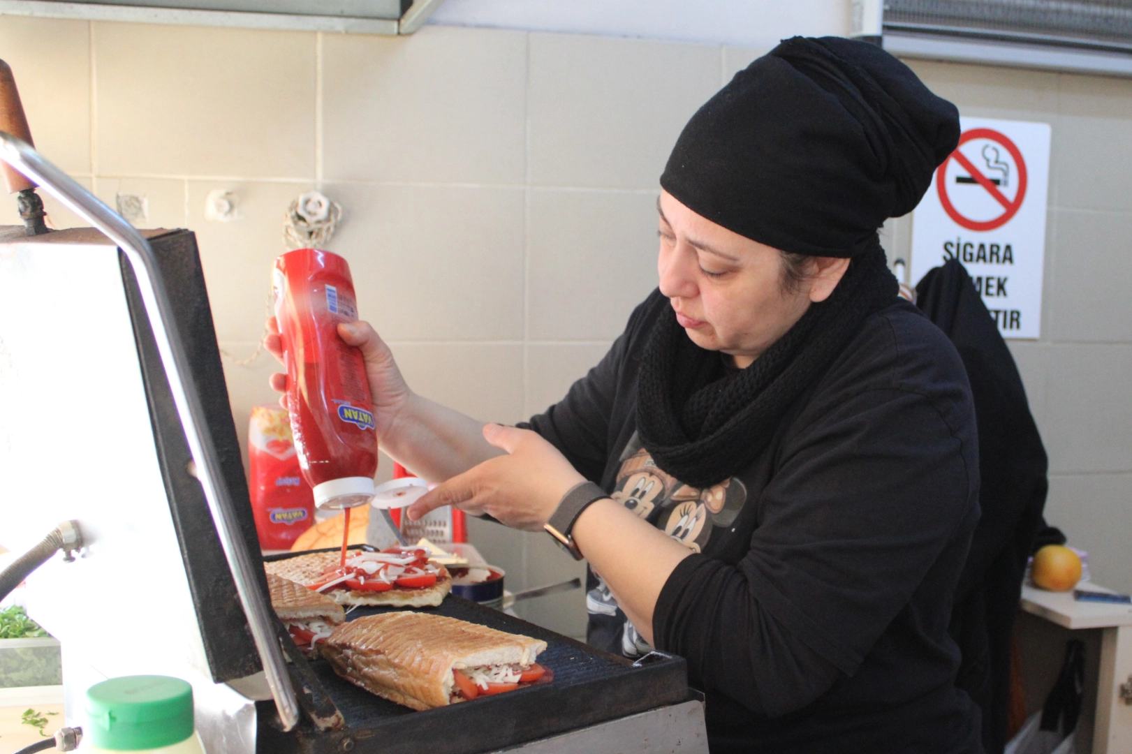 Aydın'ın Efeler ilçesinde yaşayan Seher Tülü (41), çırak bulmakta güçlük çeken eşine çay ocağında yardım ederek aile bütçesine katkı sunuyor. Köprülü Veysipaşa Mahallesi'ndeki eşinin çay ocağına 11 yıl önce gitmeye başlayan Tülü, bu süreçte mahallenin de Seher Ablası odu. Ev işlerinden arta kalan zamanda eşine destek olmaya giden Seher Tülü, tost makinesinin başında aile ekonomisine katkı sağlıyor. 11 yıldır eşi Halil Tülü'nün en büyük destekçisi olan Seher Tülü, evliliklerin en büyük sırrının da kadınların eşlerine destek olması olduğuna dikkat çekti.