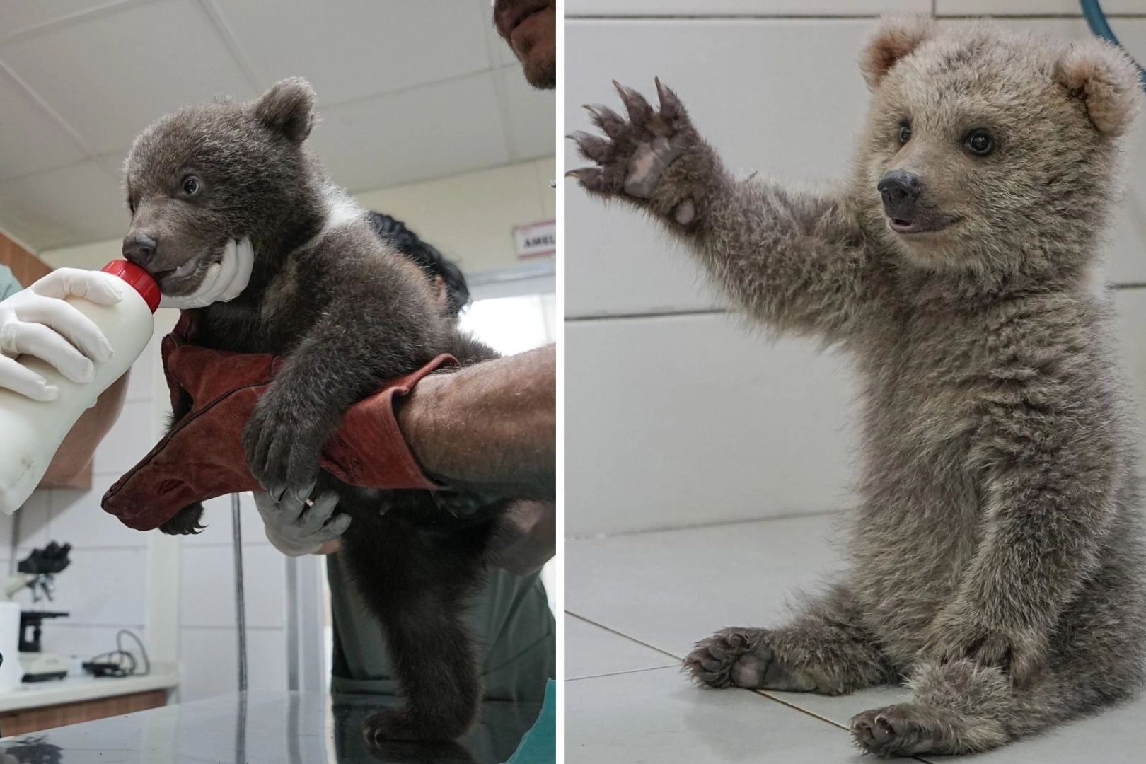 "Karabük’ün Yenice ilçesinde 20 Mart’ta orman işçileri tarafından bitkin halde bulunan 1,5 aylık yavru boz ayı, hızla Doğa Koruma ve Milli Parklar ekiplerine bildirildi. İlk müdahalenin ardından Celal Acar Yaban Hayvanı Kurtarma ve Rehabilitasyon Merkezi’ne götürülen yavru ayıya ‘Bulut’ adı verildi. Burada yapılan kontrollerde 2 kilo 720 gram ağırlığında olduğu tespit edilen Bulut, özel beslenme programına alındı. Benzer şekilde, Bingöl’de 12 Nisan’da bir çoban tarafından bulunan dişi yavru boz ayı da koruma altına alındı. Yapılan incelemede 1,5 aylık olduğu belirlenen yavru ayı, rehabilitasyon merkezine nakledildi ve ‘Yağmur’ adı verildi. Yağmur’un ise 4 kilo 200 gram ağırlığında olduğu tespit edildi. İki yavru ayı, merkezde titizlikle sağlık kontrollerinden geçiriliyor ve beslenme uzmanları tarafından hazırlanan özel diyetle büyütülüyor." Celal Acar Yaban Hayvanı Kurtarma ve Rehabilitasyon Merkezi'ndeki ayı barınağı 73 ayıya ev sahipliği yapıyor. Her gün sağlık kontrolleri ve kilo ölçümleri yapılan yavru ayılar günde 6 kez laktozsuz süt, bal, haşlanmış yumurta, krema ve multivitamin takviyesiyle besleniyor. Bulut ve Yağmur isimli sevimli yavru ayılar, güvenli yuvalarında sağlıkla büyüyor. Yaşadıkları keyifli anları izlemek ise başta çalışanlar olmak üzere onları gören herkese mutluluk veriyor.